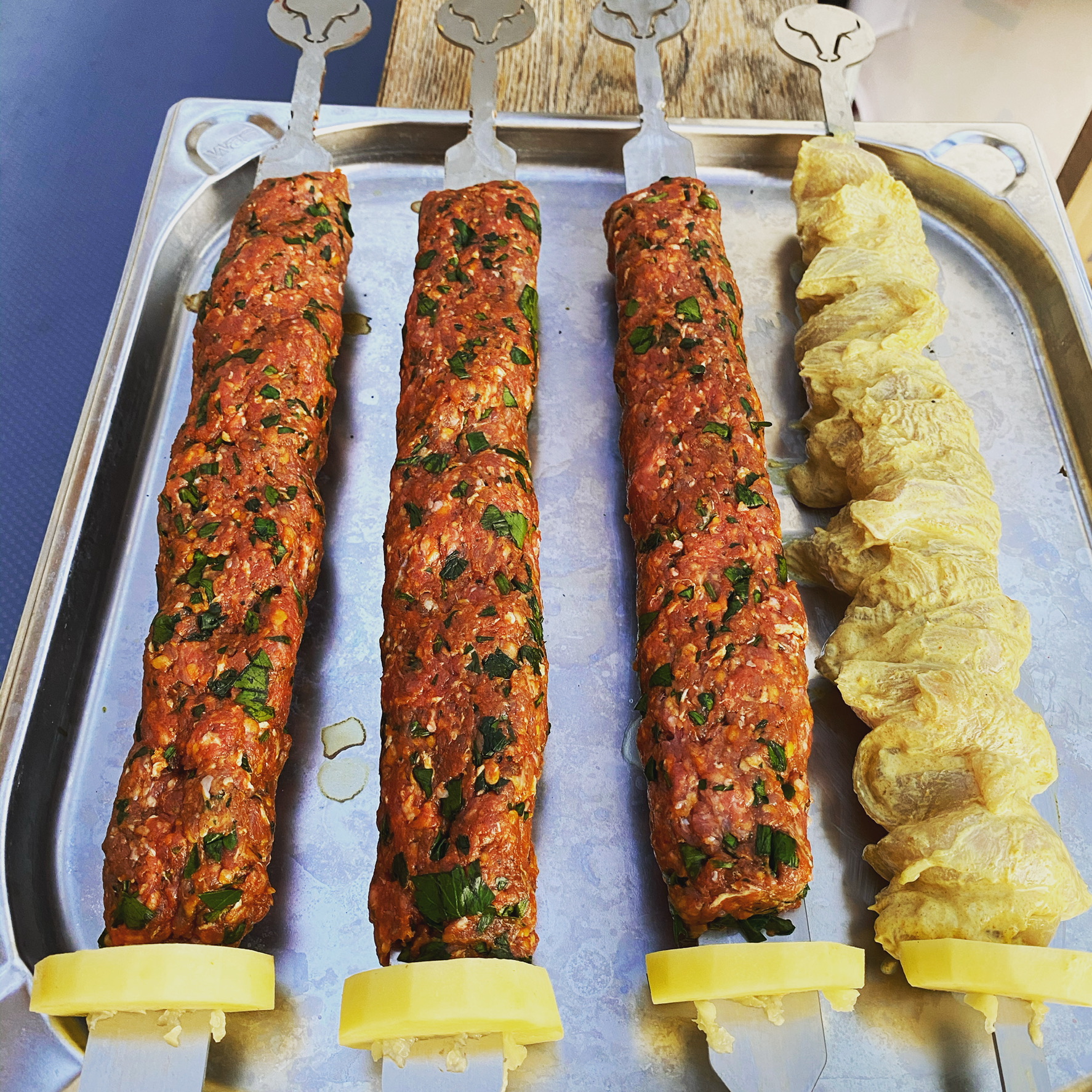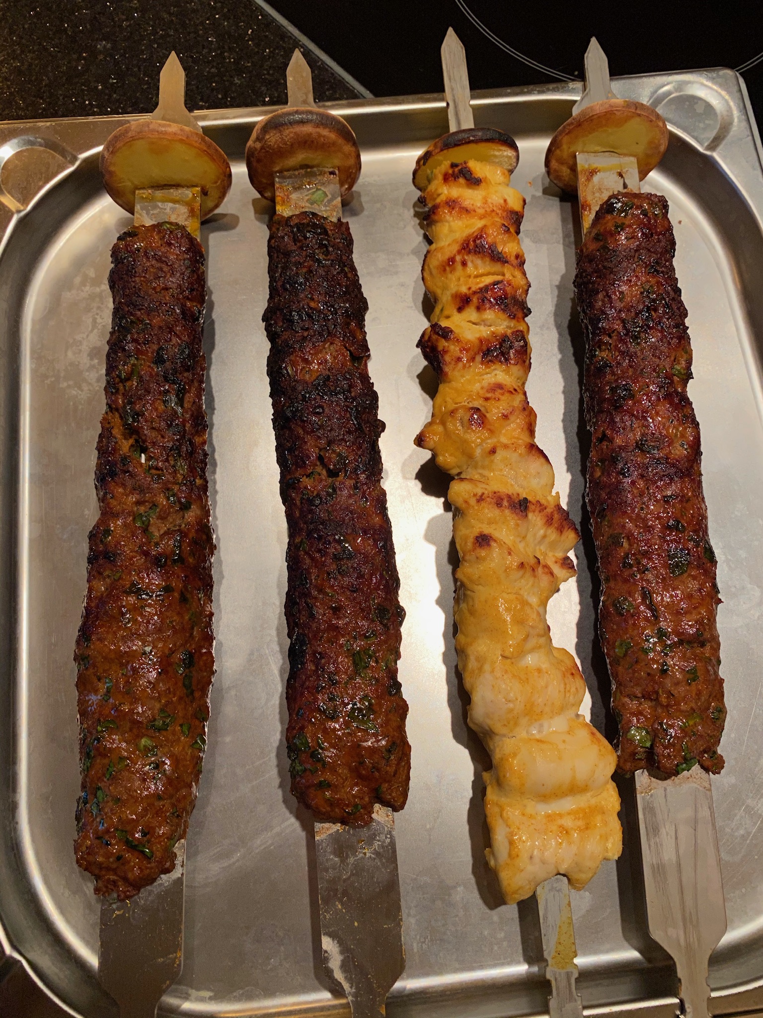 Der vierte Spies ist eine Hähnchenbrust in Joghurt mit ein paar Gewürzen eingelegt.