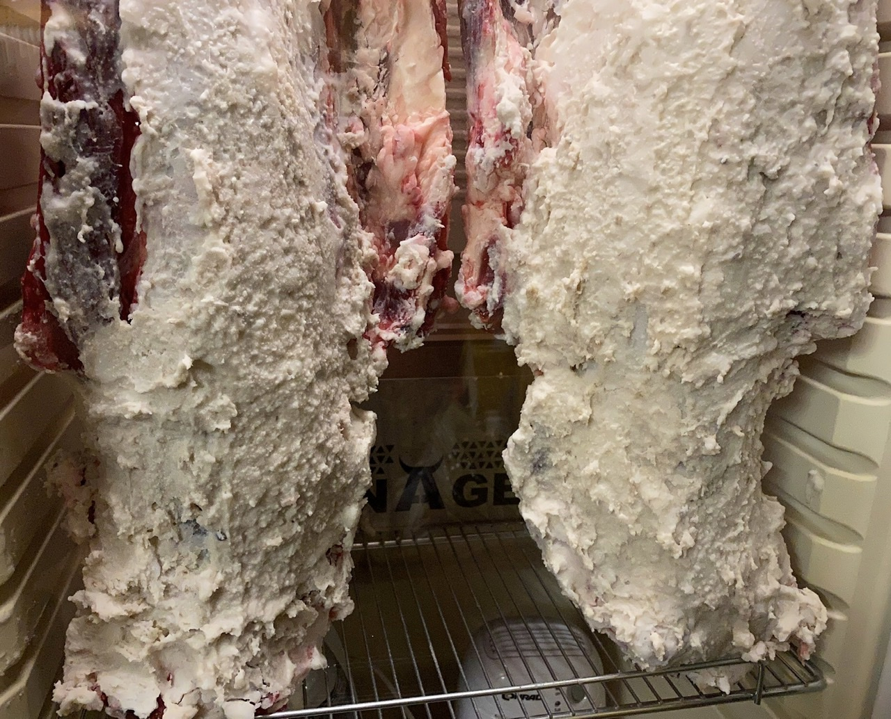 Im Grunde es das ja auch kein DryAging weil komplett hinter Luft... - ich überlege mal experimentell einfach das Fleisch samt eine Fettportion in einem Vakuumbeutel zu reifen... - das müsste auf ein vergleichbares Ergebnis kommen aber bei weniger Kopf wegen Risse etc.