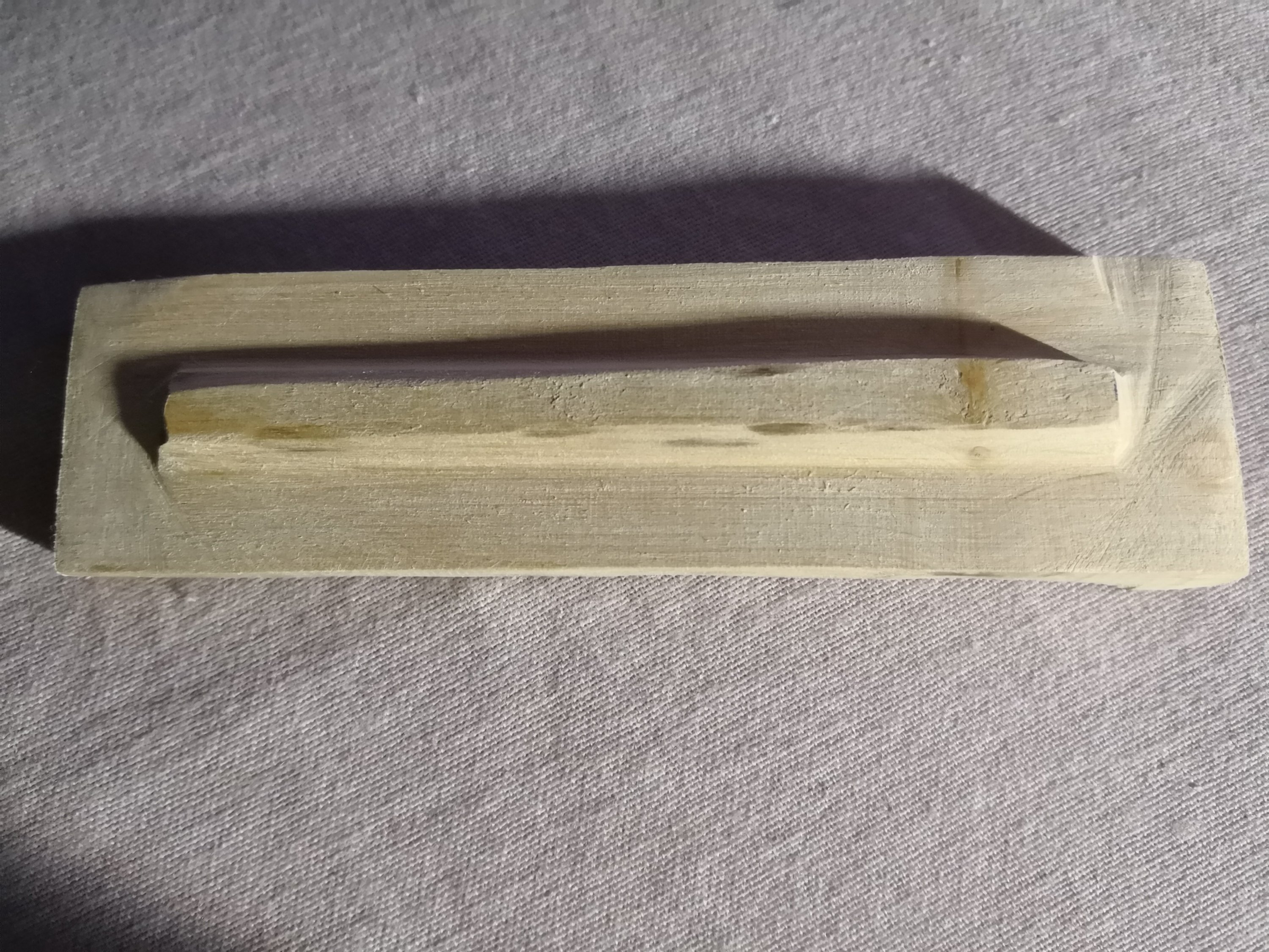 Ich habe die 2. Griffhälfte angefangen. Als ich mir nochmal den Olivenholzgriff anschaute, war klar, ich versuche auch, ein Mittelstück stehen zu lassen.