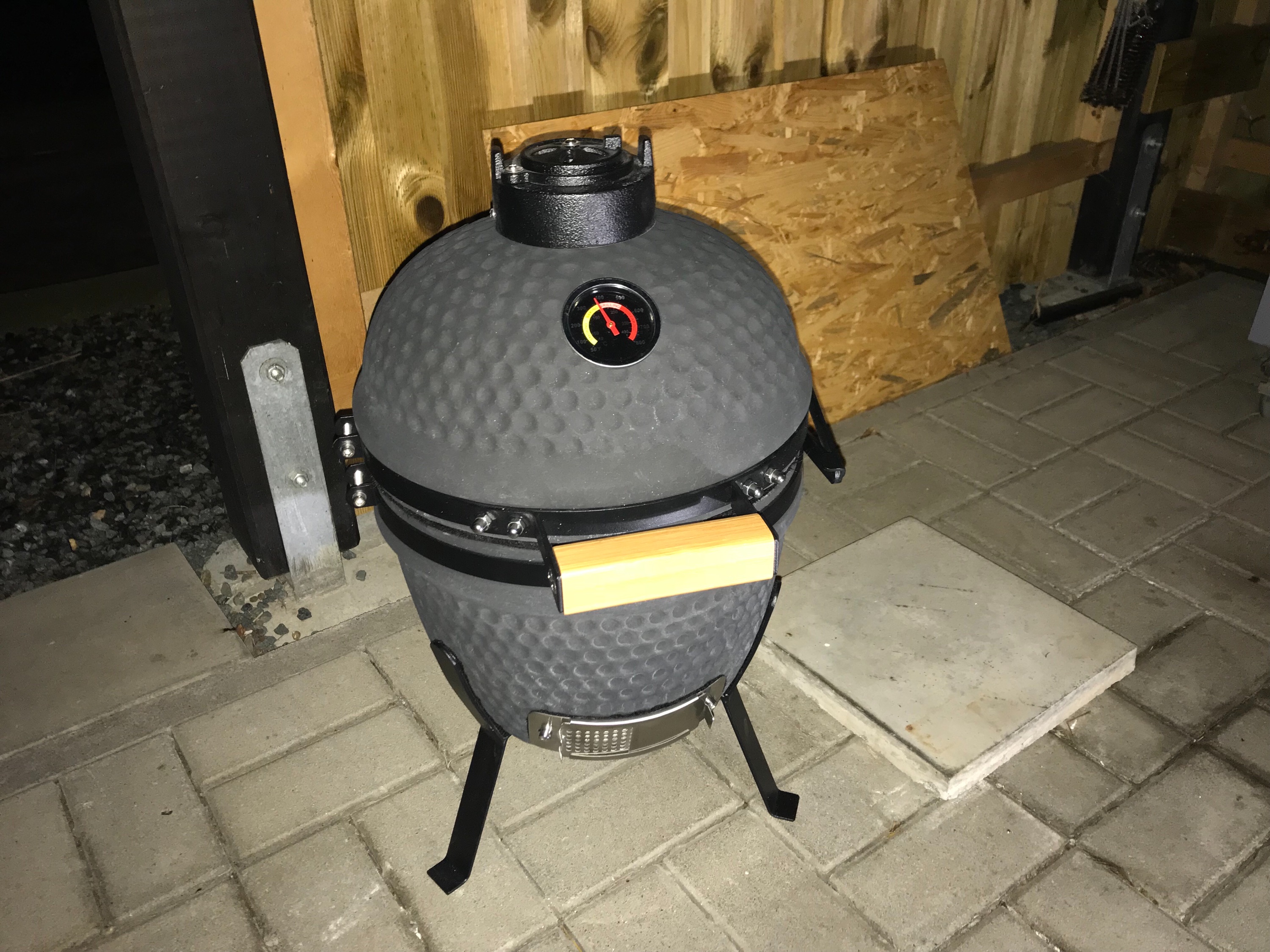 So, habe heute das Ei eingeweiht. Briketts soll ich nicht nehmen, die Grillkohle war alle, also habe ich Holz genommen.
