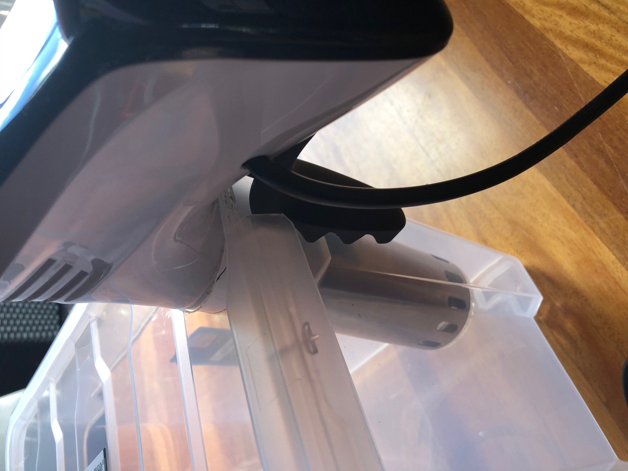 Wenn Du die Aussparung am Deckel noch zum Rand ausweitest, kannst Du den Deckel abnehmen, ohne den Stick rausnehmen zu müssen. Die Stabilität des Deckels sollte dabei nicht so schlimm leiden, dass er zu wackelig wird. Ich werde das dann mal probieren.