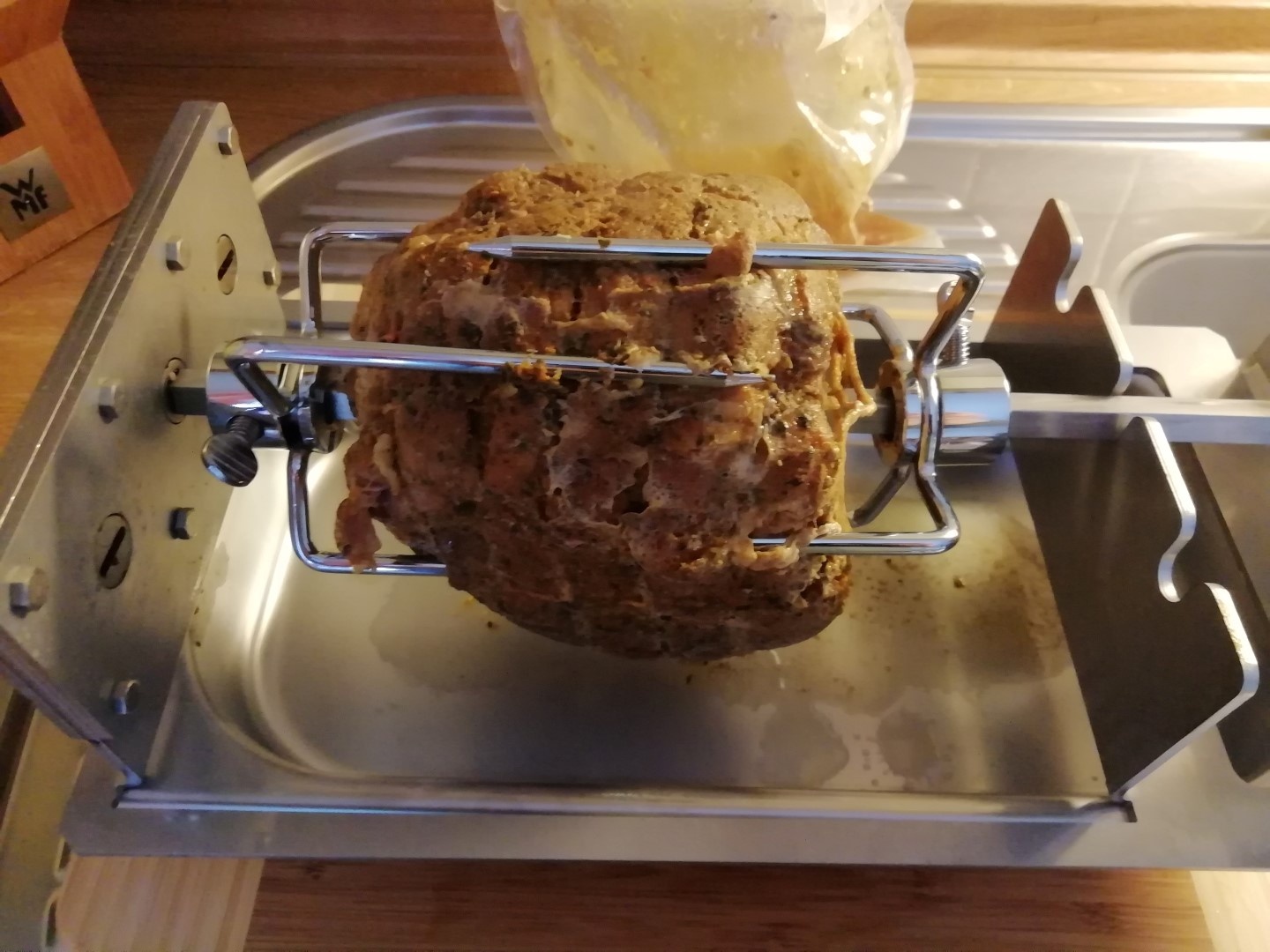 hier ist meine Roti App. Bisher habe ich nur 2 Spieße gegrillt. Eine Spießbraten sollte aber auch möglich sein. Die Antriebsachse ist ein 8mm vierkannt Edelstahl.
