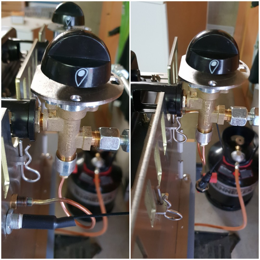 Ventil war auch einer der Tests die ich durchgeführt hatte - hatte ich beim Video dann leider nicht korrigiert. Habe das so weit reingedreht bis es nicht mehr geht, dann so weit zurück dass der Brenner senkrecht steht, dann gekontert.