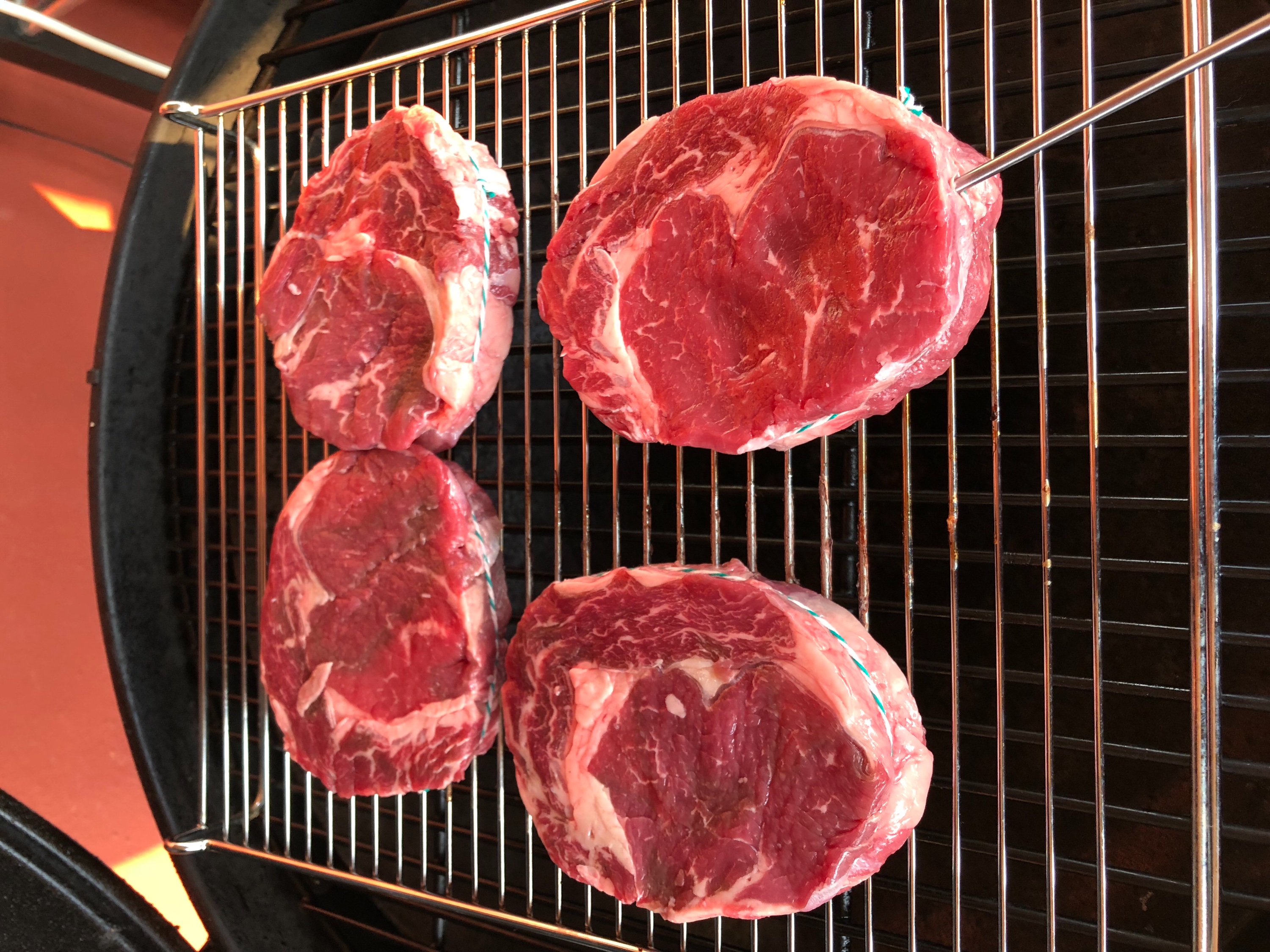 Die Steaks bleiben mit der Schnur besser in Form sind gleichmäßiger und etwas dicker. Bei Rib-eye ist es imho sinnvoll, da es etwas locker ist durch den Fettkern.