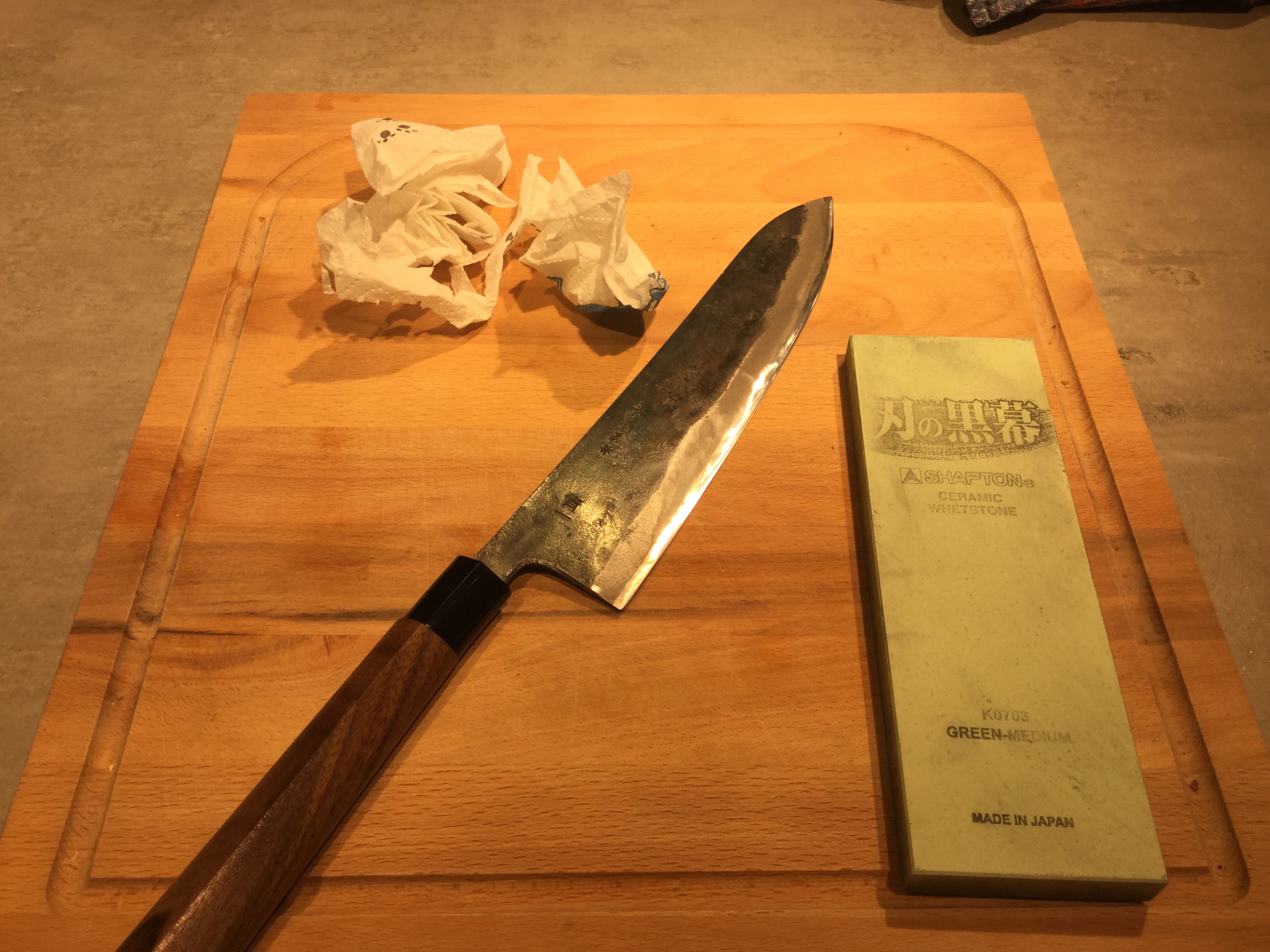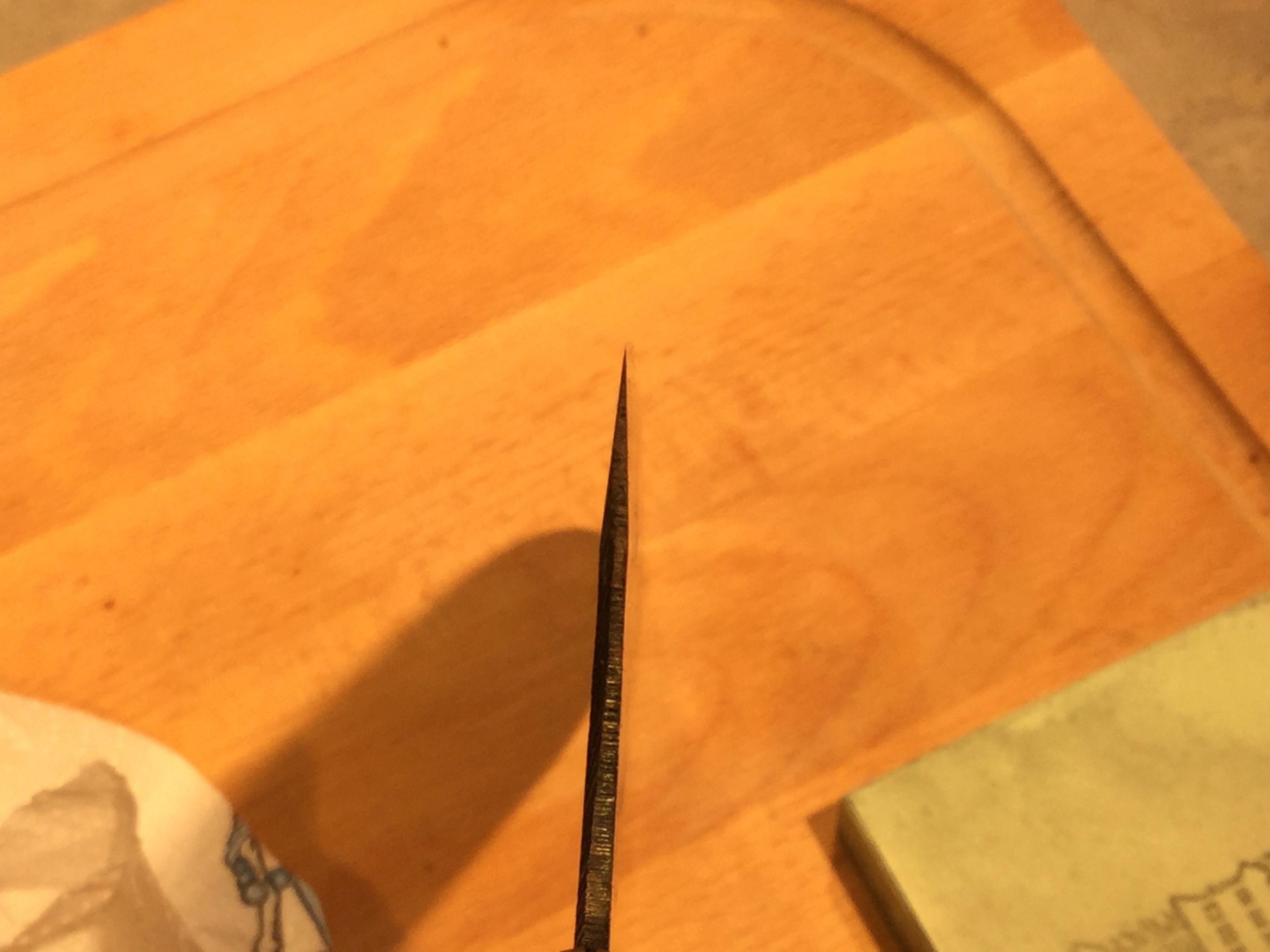 Nachschärfen erfolgte heute. 10 x links, 10x rechts ohne großes Theater. Dann auf Diamantleder abgezogen und fertig. Ergebnis: Muss wieder an der Schneidtechnik arbeiten...