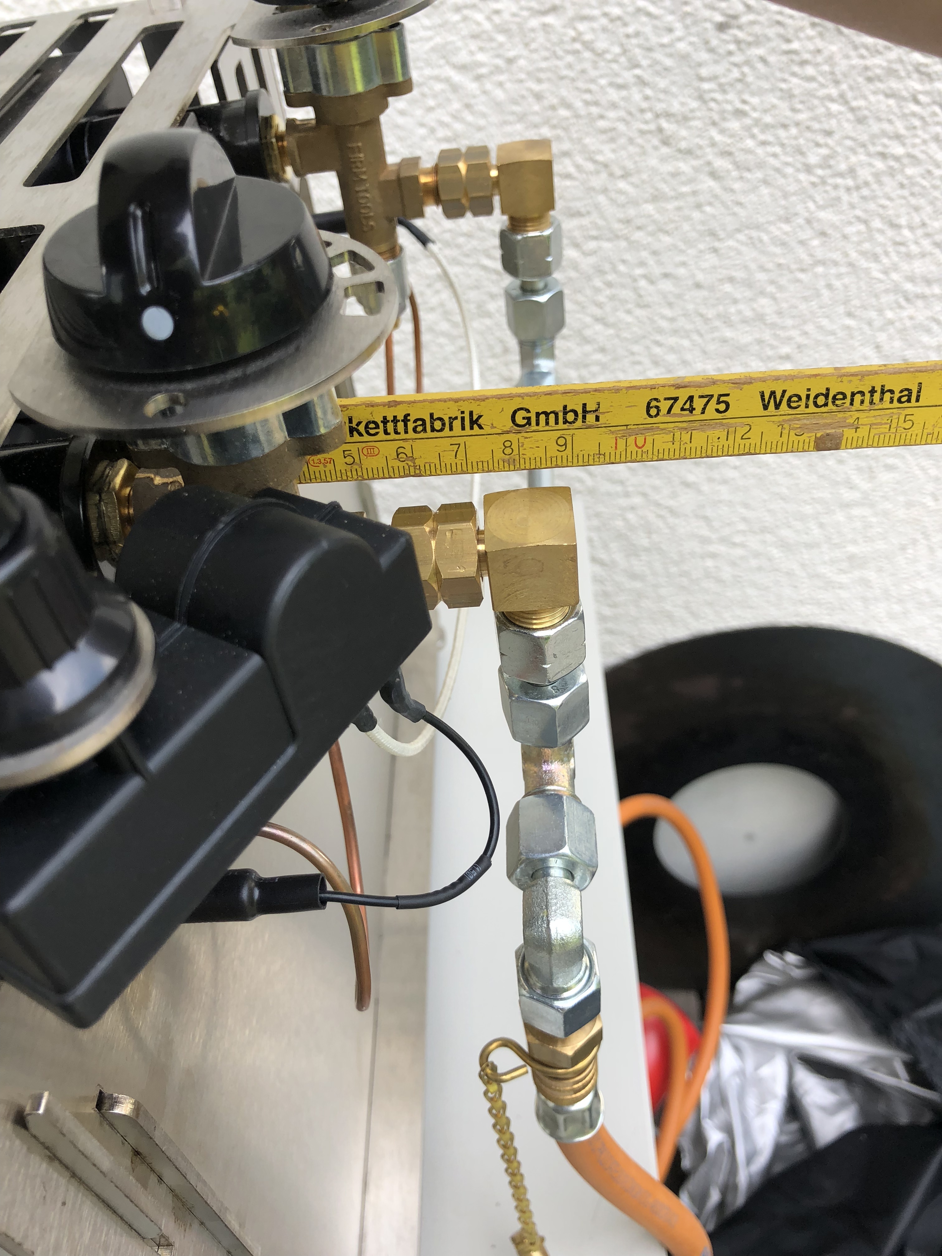Bitte angeben, wie das mit dem angeschlossenen Gasschlauch hinten passt und ob ihr einen Winkel nach unten nutzt für den Schlauch.