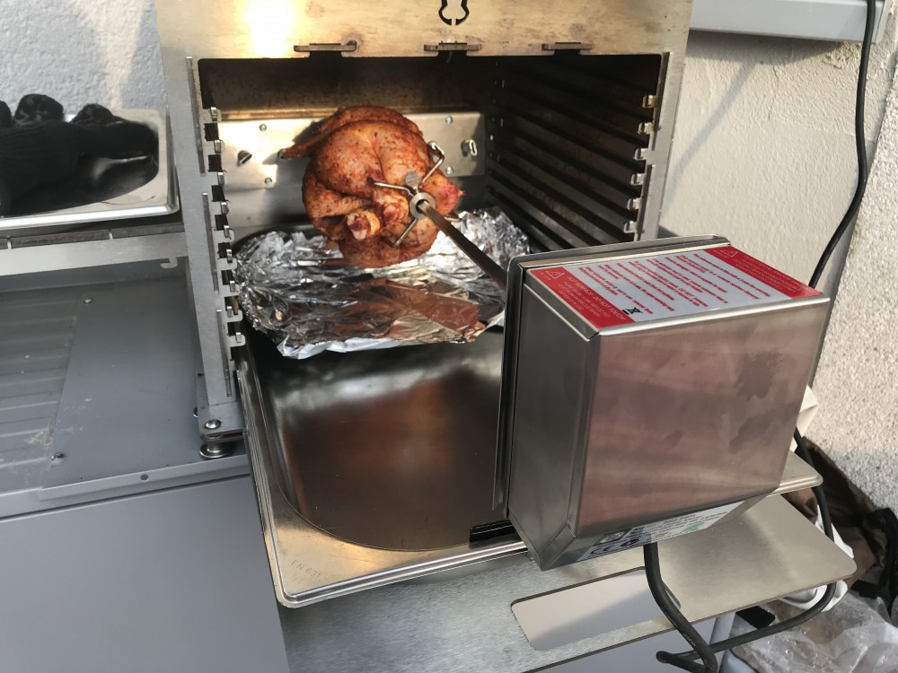 Erster Versuch war ein 1,4 KG Hähnchen.