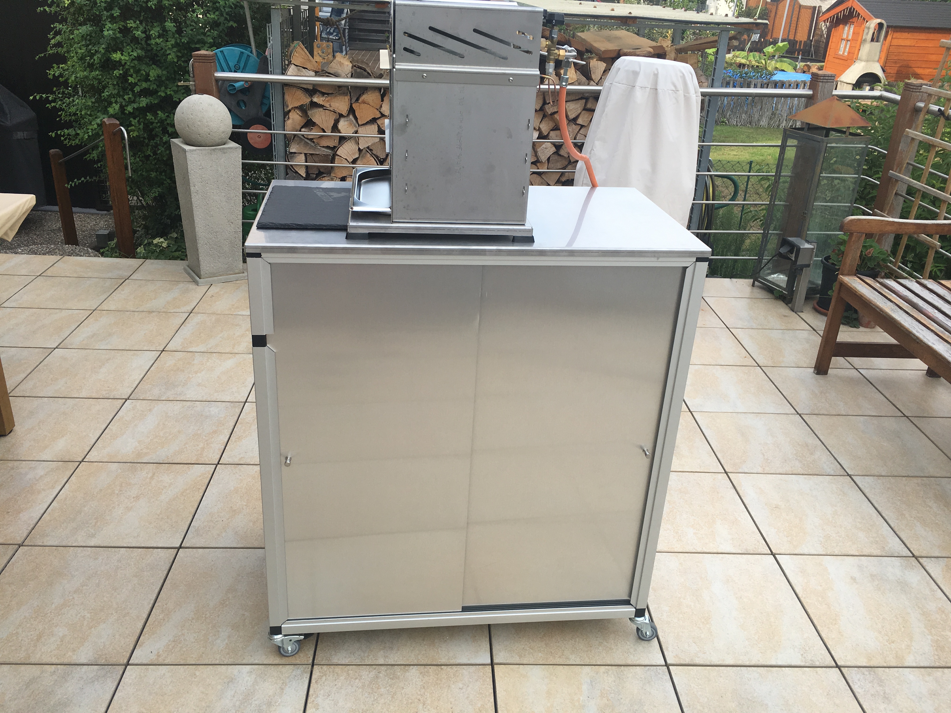 Nach dem ich nichts passendes oder bezahlbare gefunden habe und eine gewisse Vorstellung hatte was ich wollte musste ich mir meinen Grillwagen für meine Twin Flamestation selbst bauen.