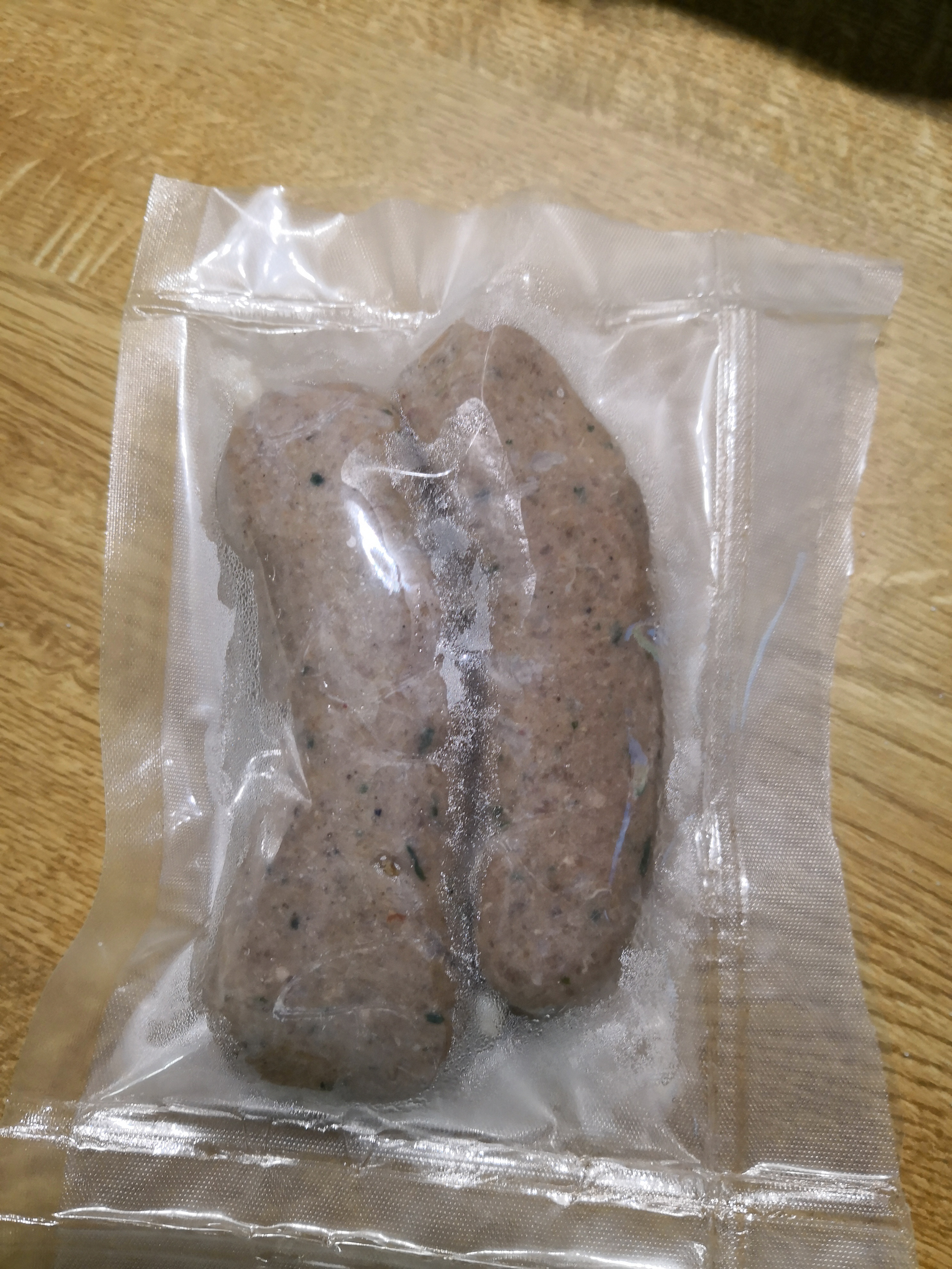Heute war mal wieder Bratwurst dran. Es sollte eine feine Bärlauchbratwurst nach Bitkiller werden. Die Zutaten habe ich etwas geändert. Zunächst das Mett noch leicht angefroren durch den Wolf gedreht, kleinste Scheibe. Hier bereits das Schmalz (m. Kräutern und gedünsteten Zwiebeln) und den TK-Bärlauch mit durchjagen. Das Fleisch ist auf der feingemahlenen Gewürzmischung gelandet, konnte so gleich mit eingemischt werden und war beim 2. Durchlauf schon gut mit drin. Dann noch die kalte Milch dazu und gut mischen. Dann in die Därme füllen, einschweißen und einfrieren. Das restliche Brät ergab eine Boulette zum Abendbrot.
