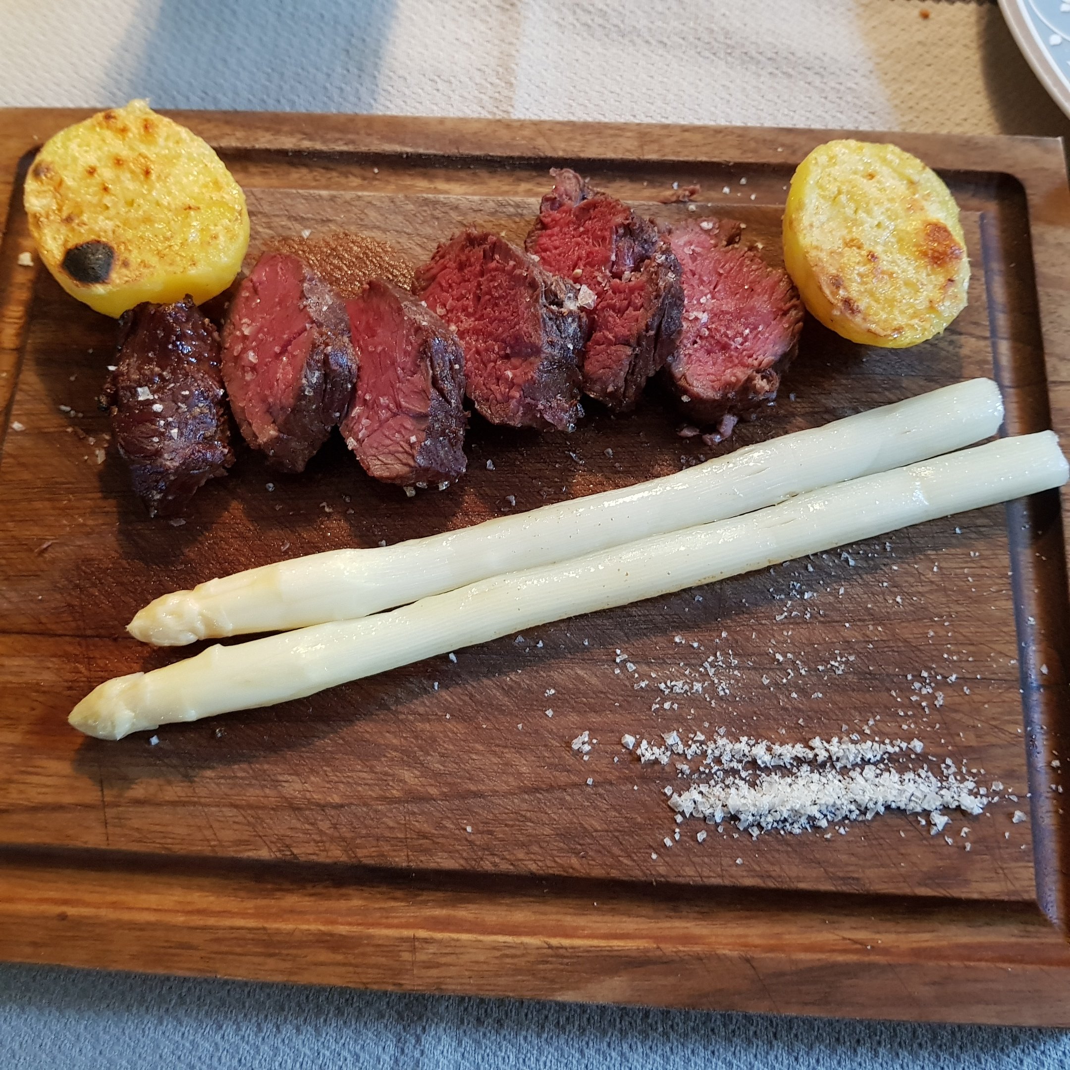Dann jeweils einen Halben Zapfen SV 53°C/3h vorgegart+OHG und die 2. Hälfte direkt im OHG mit nachziehen auf KT