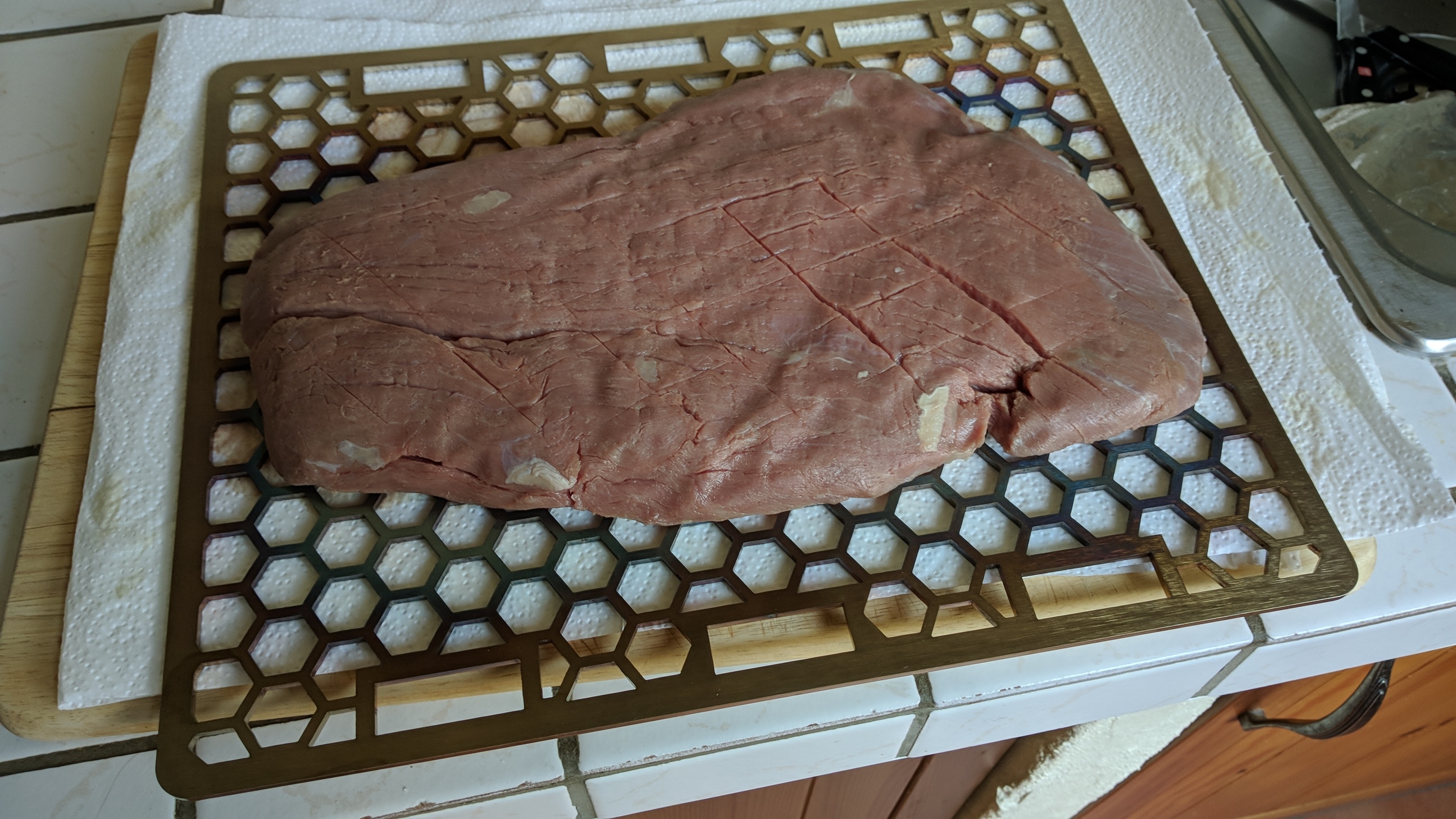 Nach dem Bad im SV bei 53° wurde gesalzen und dann durfte das Stück unter die Höhensonne.