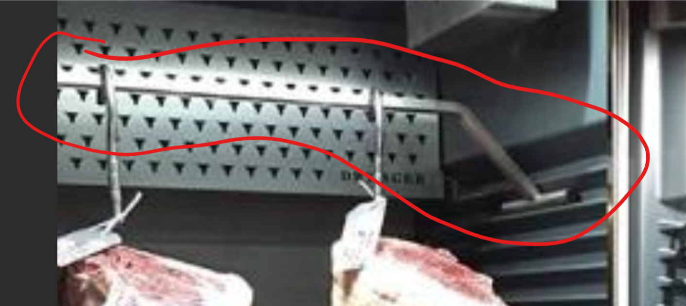 Einsatzzweck: ein je nach Fleischbeladung unterschiedlich hoher "Turm" im Reifeschrank für Roste/Gastroschalen