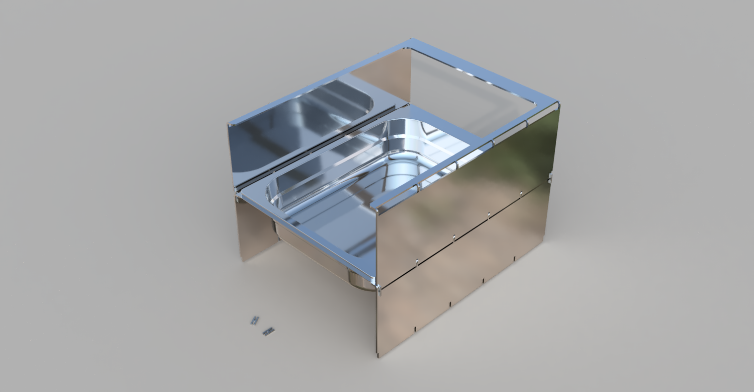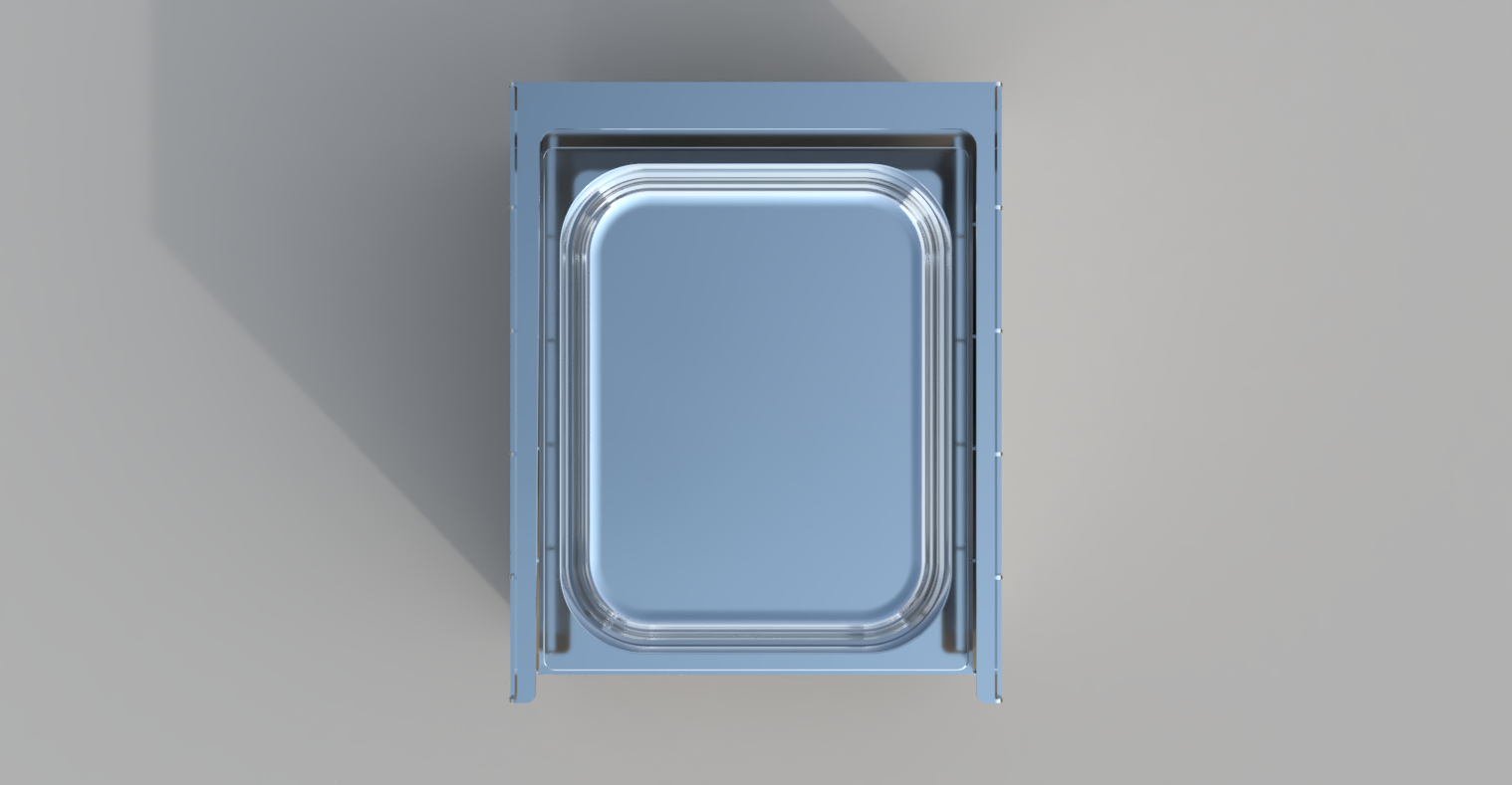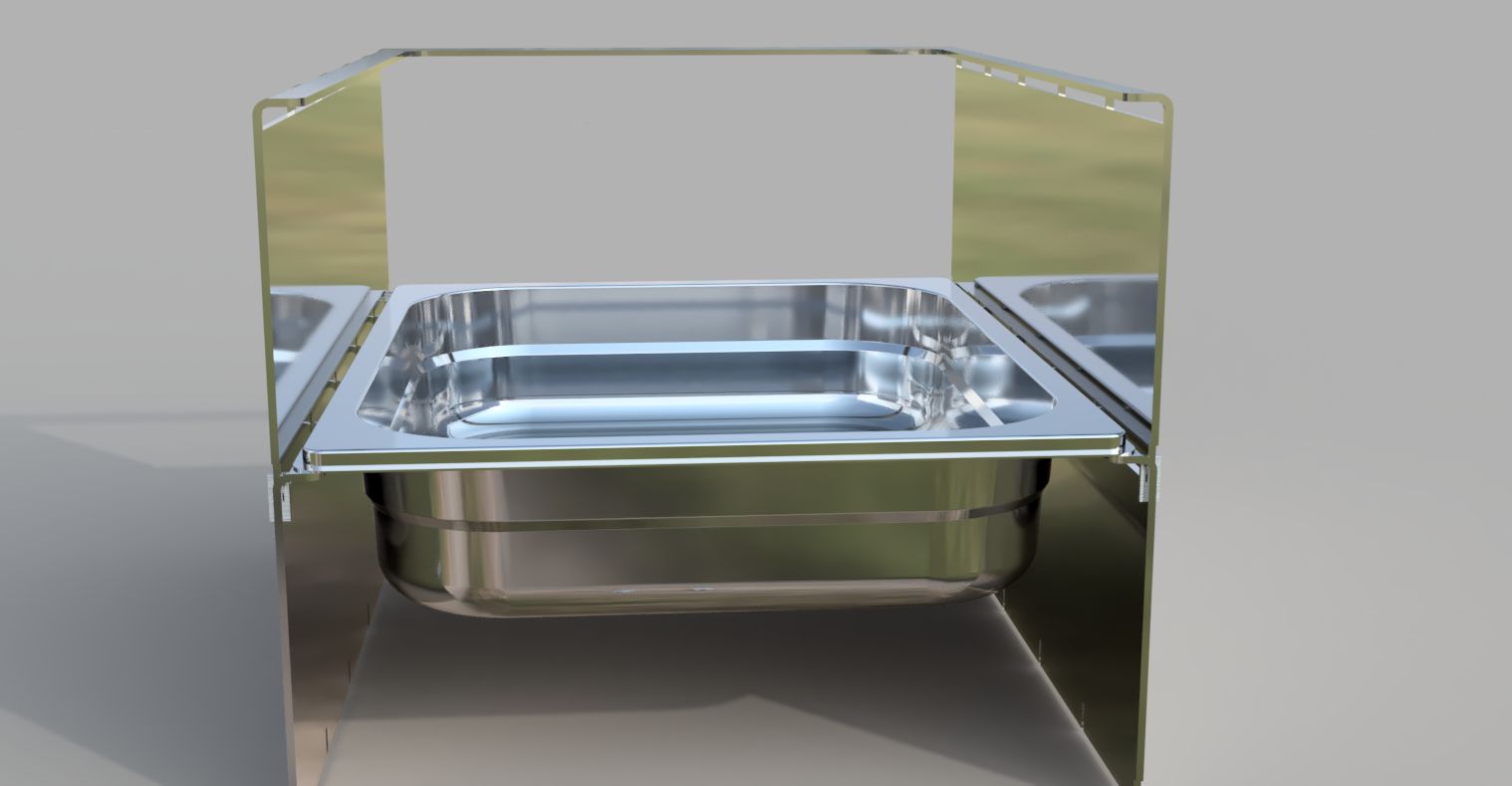 Alternativ spiele ich auch mit dem Gedanken, mehrere unterschiedlich hohe "U" Profile in GN Größe zu lasern... die Aussenseiten mit Stegen zum selber kanten wie die Haube des OHGs. Dann kann man je nach Bedarf die Schalen stapeln und kann inder Höhe variieren. Nachteil: will man ganz unten eine Schale rausnehmen, so muss man erst die oberen wegheben.