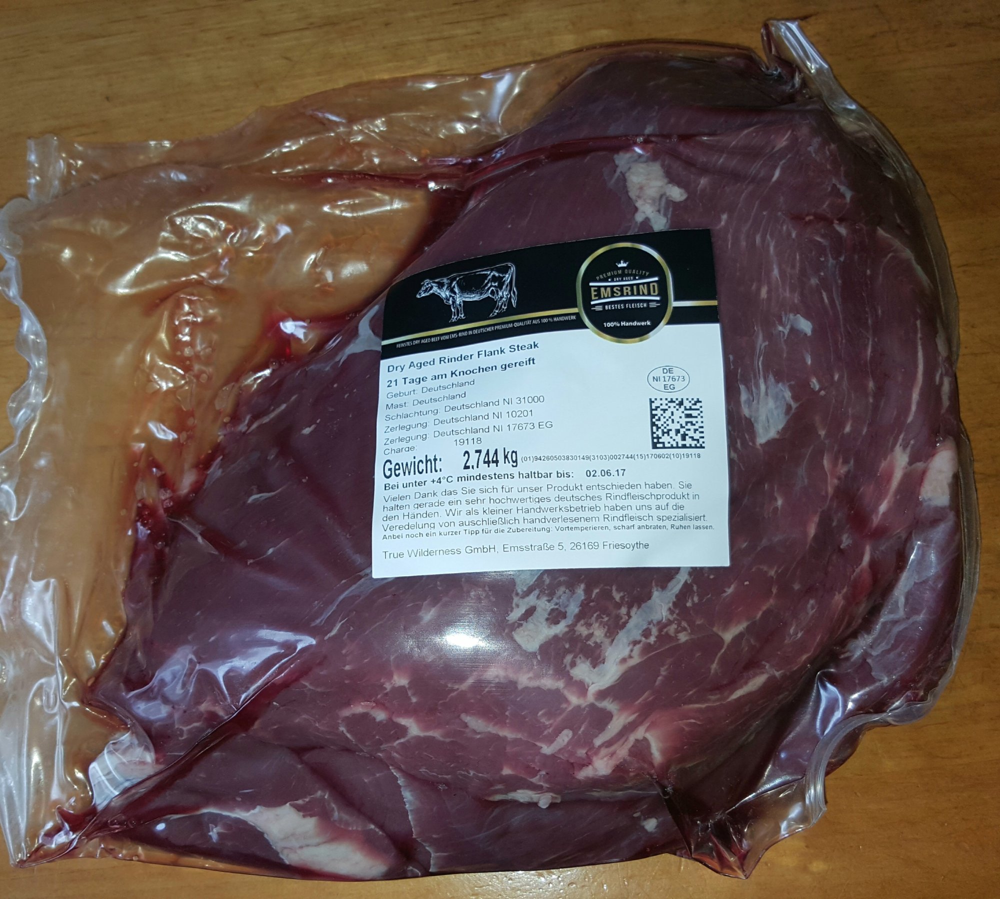 Du schreibst, das Flank war Dry Aged. Letztens hab ich iwo eine Verpackung gesehen, da stand sogar Flank, dry aged, x Tage am Knochen gereift.