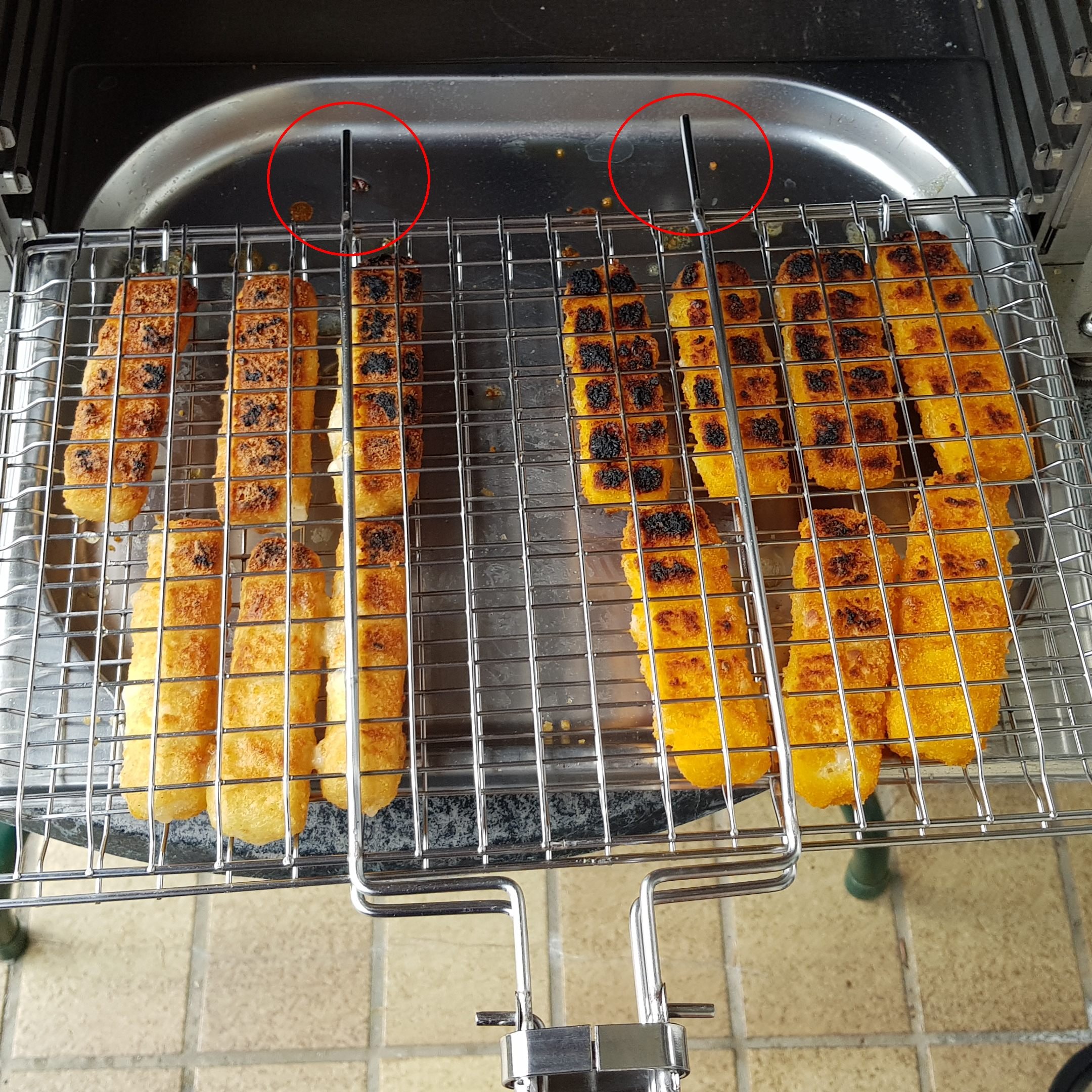 Ich bleibe aber bei Fischstäbchen bei ner GN-Schale (mittlerweile ne gelochte) - da muss ich zwar alle einzeln wenden aber durch einfaches drehen der GN-Schale kann ich dann auch leicht einen Ausgleich für die unterschiedliche Hitze (vorne/hinten) herstellen.