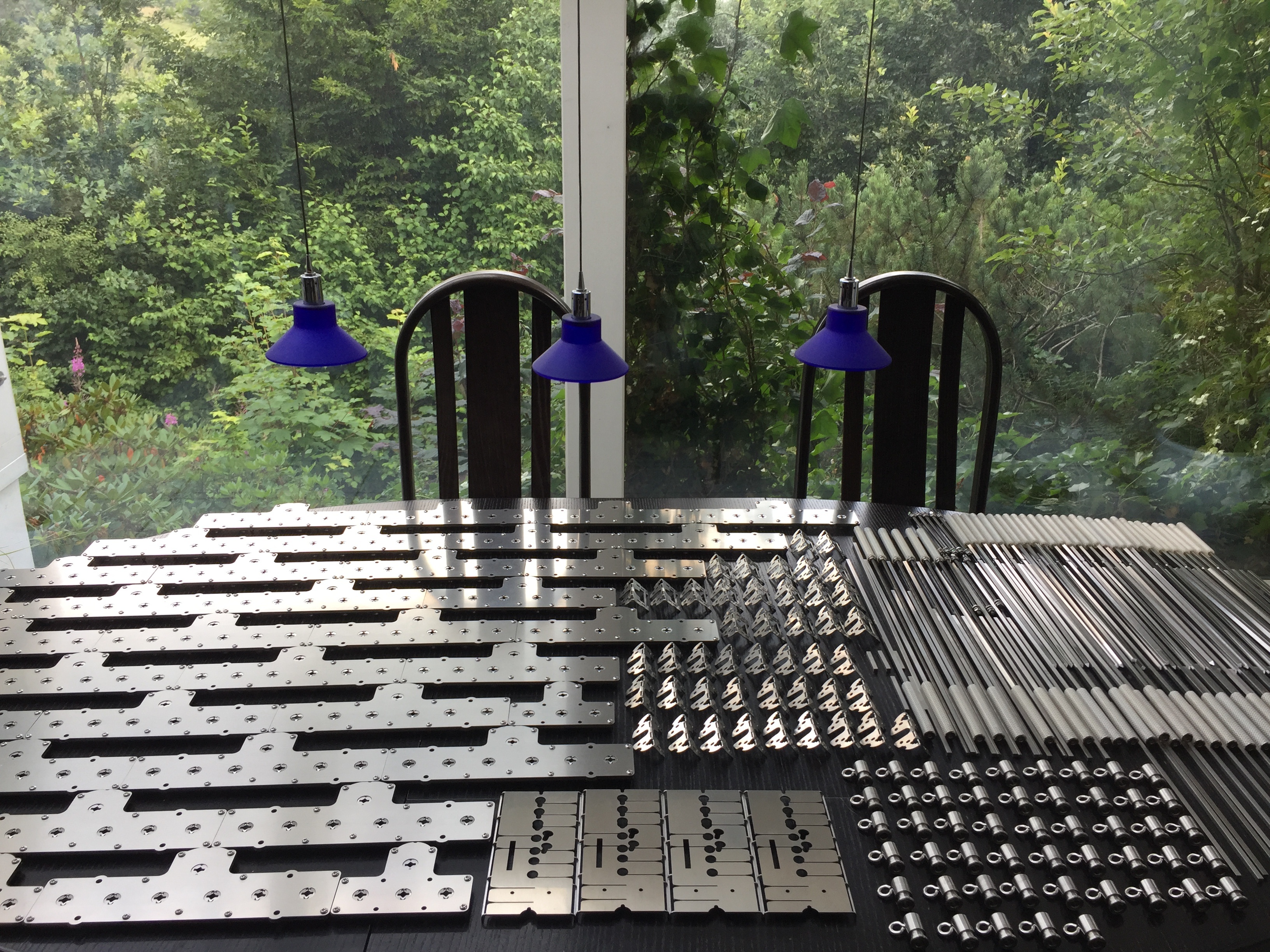 Vor ca. drei Wochen sind 150 kg gelaserten Teile der Bestellungen bei mir eingetroffen. Die Pakete wurden gleich ausgepackt und deren Umfang gecheckt: