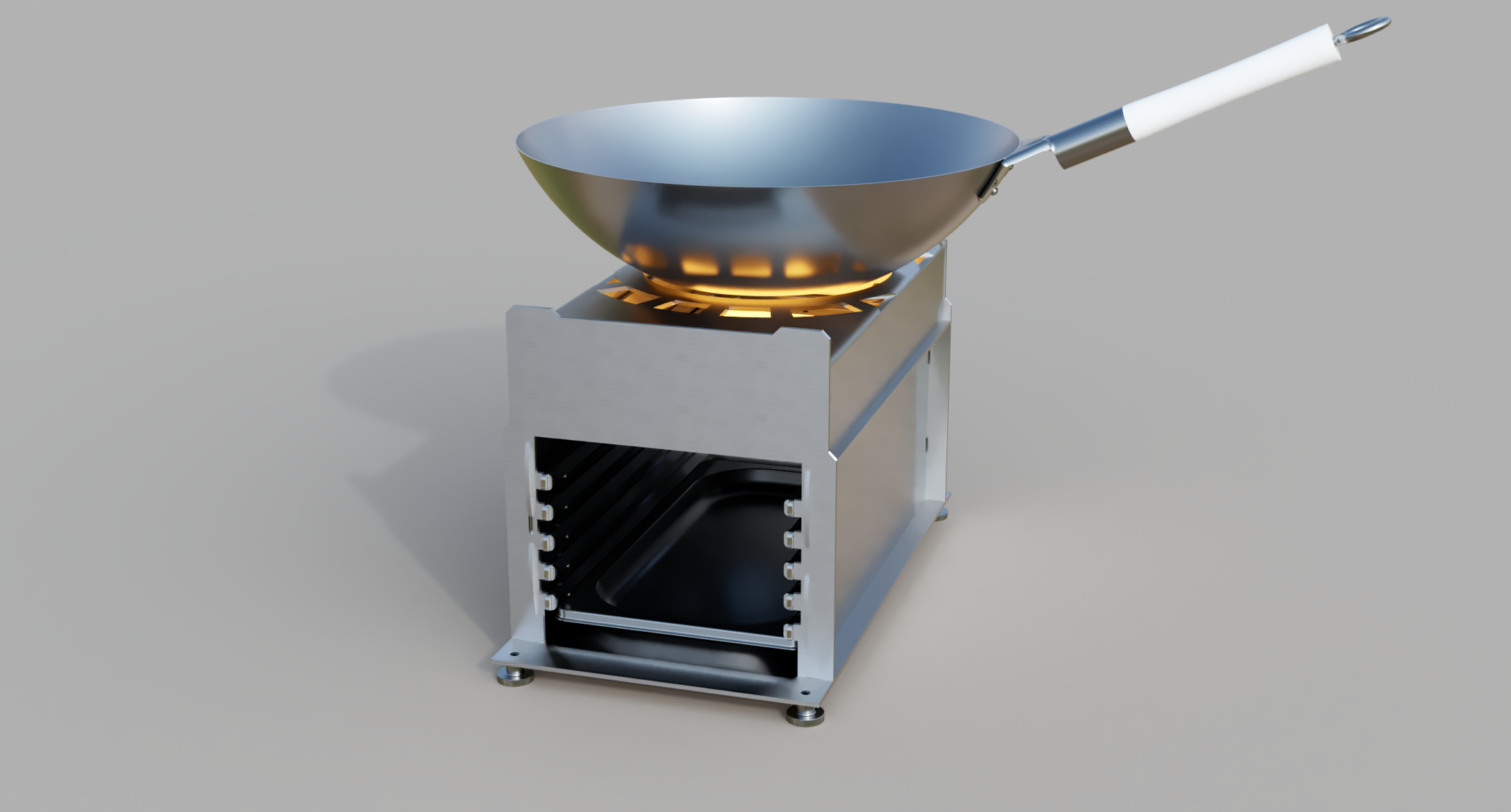 wird der brenner dann gedreht für den WOK Betrieb oder willst du rein über die Abwärme vom Gehäuse gehen?