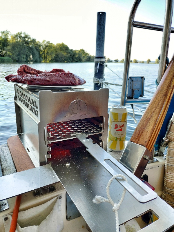 Da die 1/2 Literflasche Propan nicht optimal ist, habe ich den mOHG Mal mit 2kg Butan / Campinggaz betrieben. Quasi als maritimer OHG