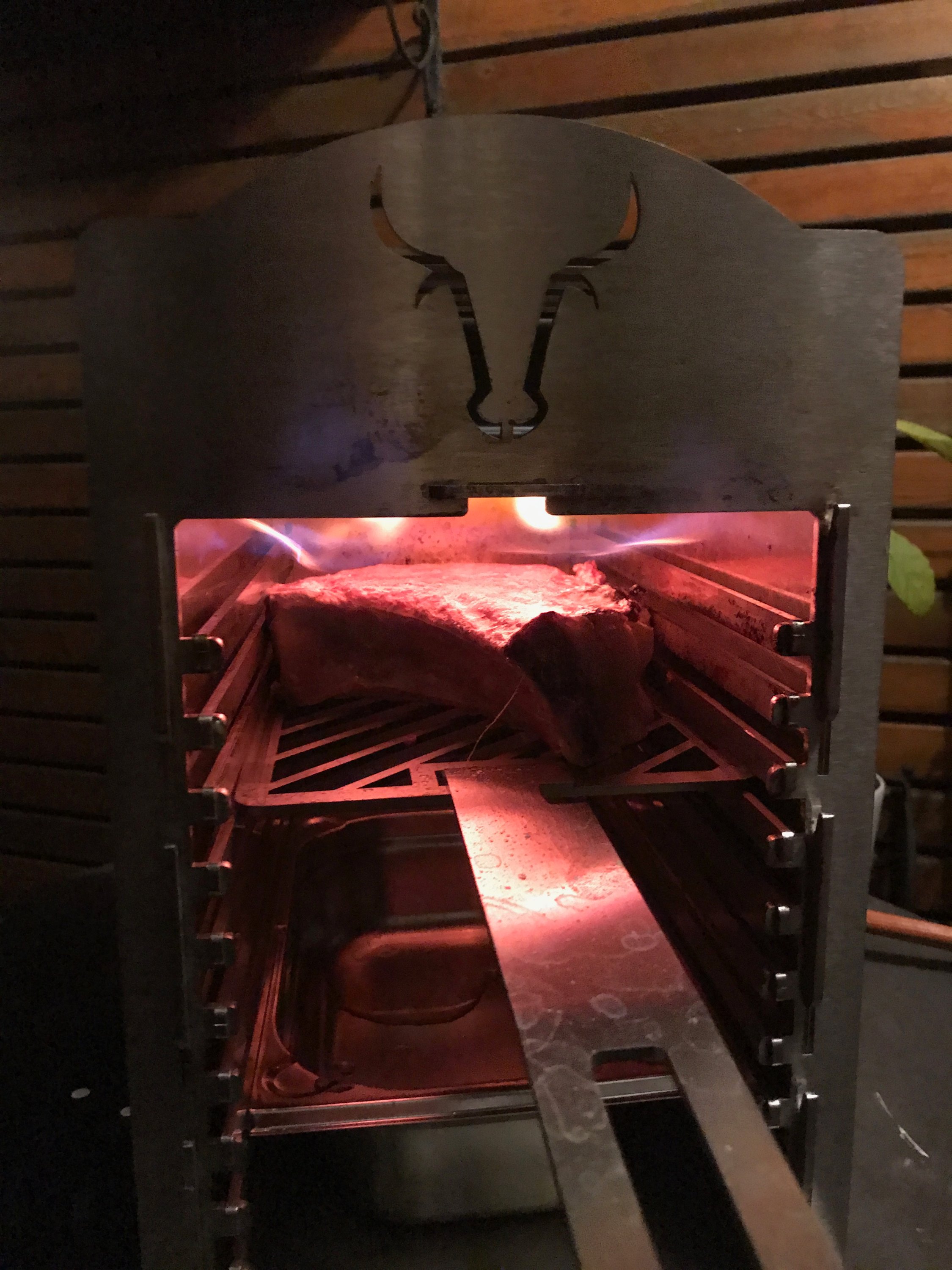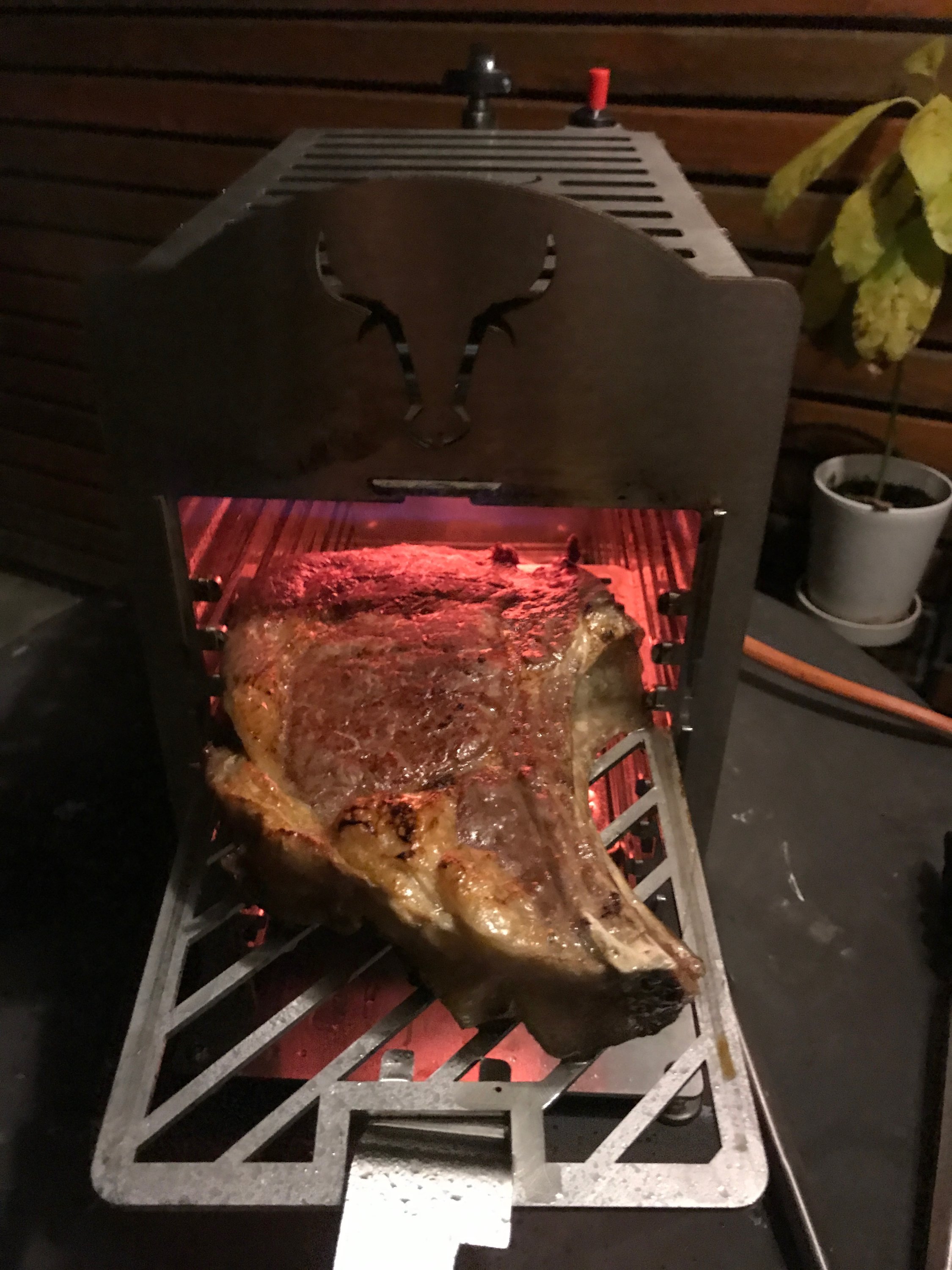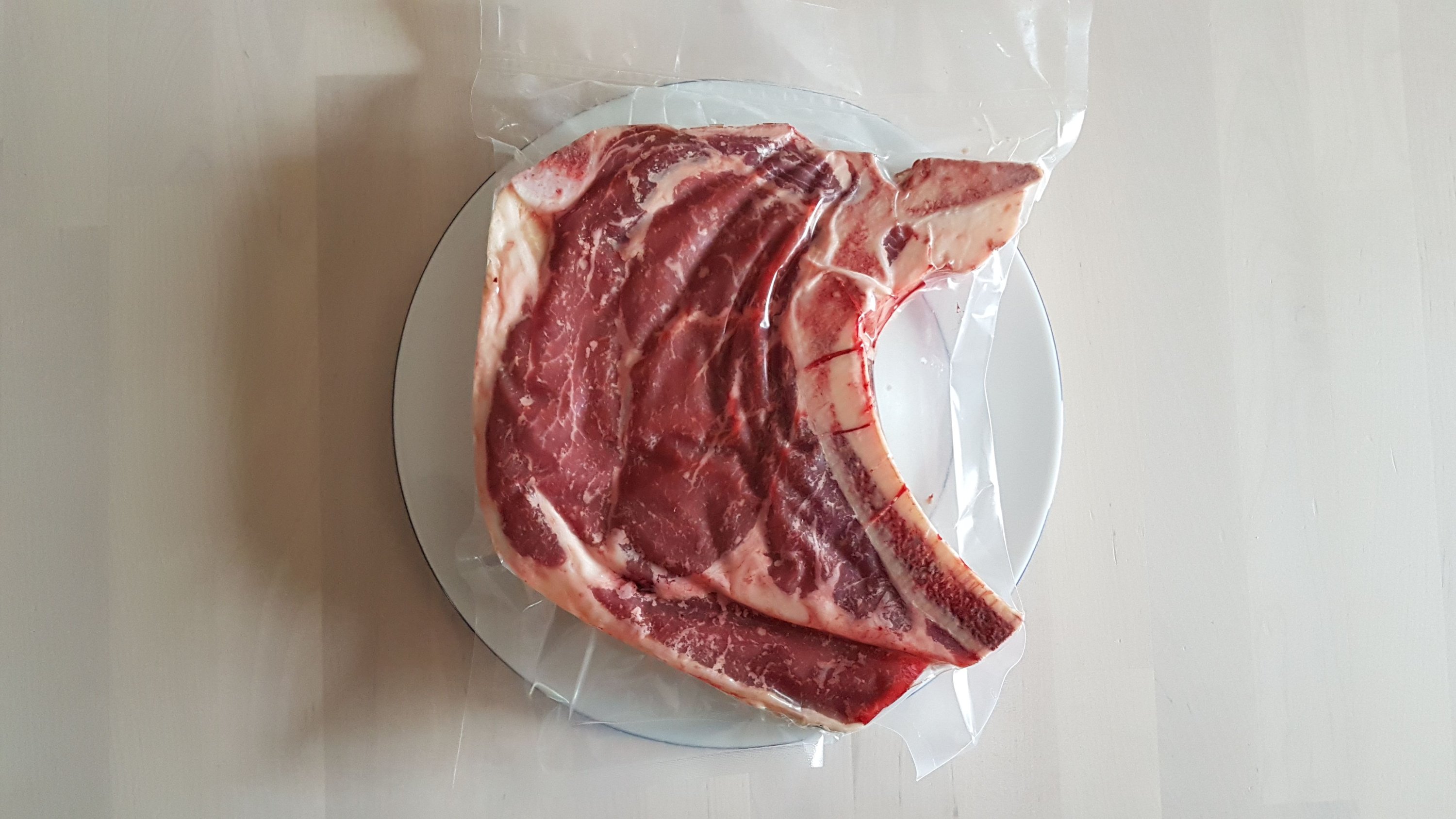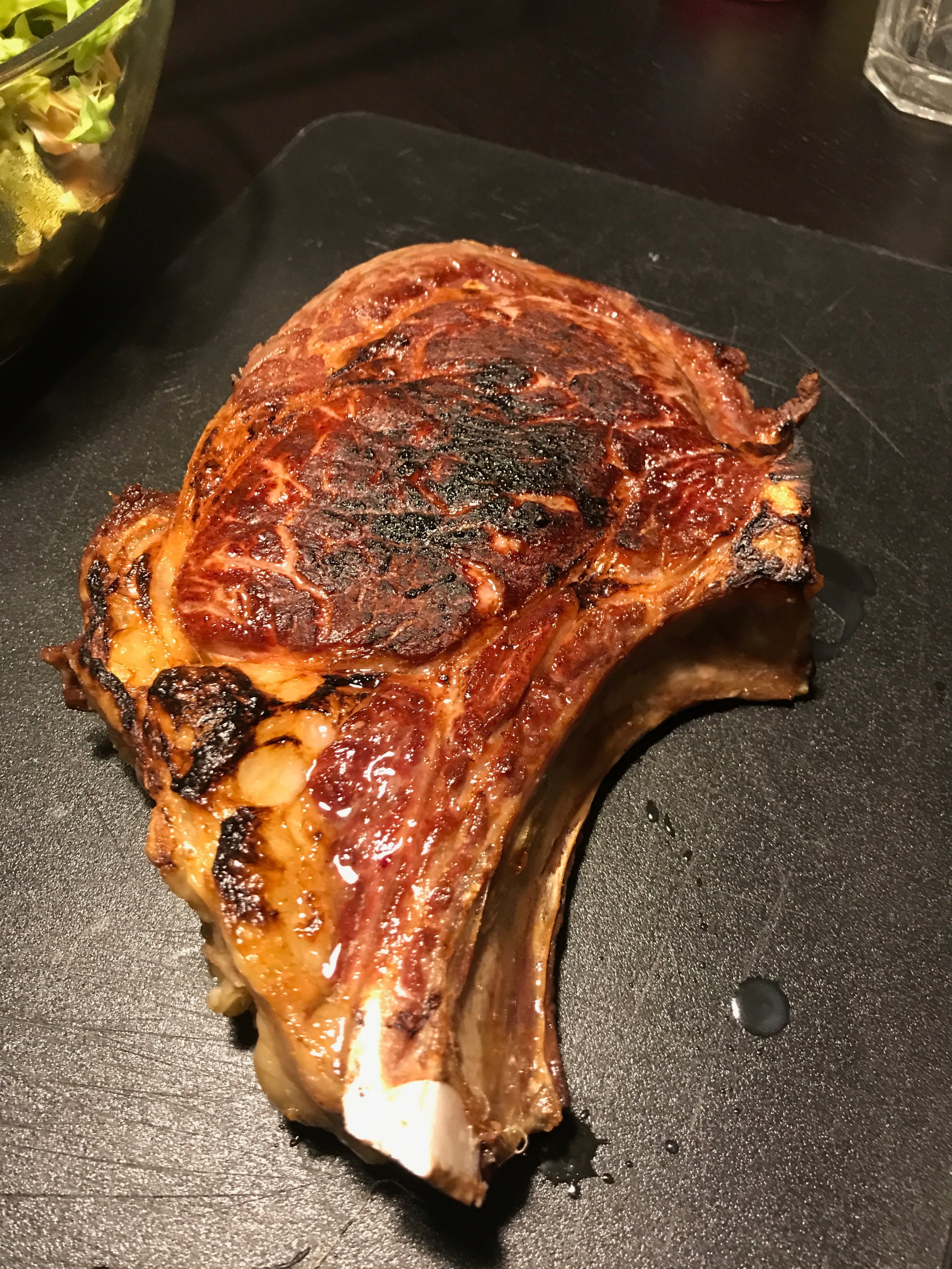 Ich hatte mir, was heißt mir - die ganze Familie (Frau und zwei Kids haben von dem Teil mitgegessen) ein Dry aged Ochsenkotelette gegönnt ca. 1kg.