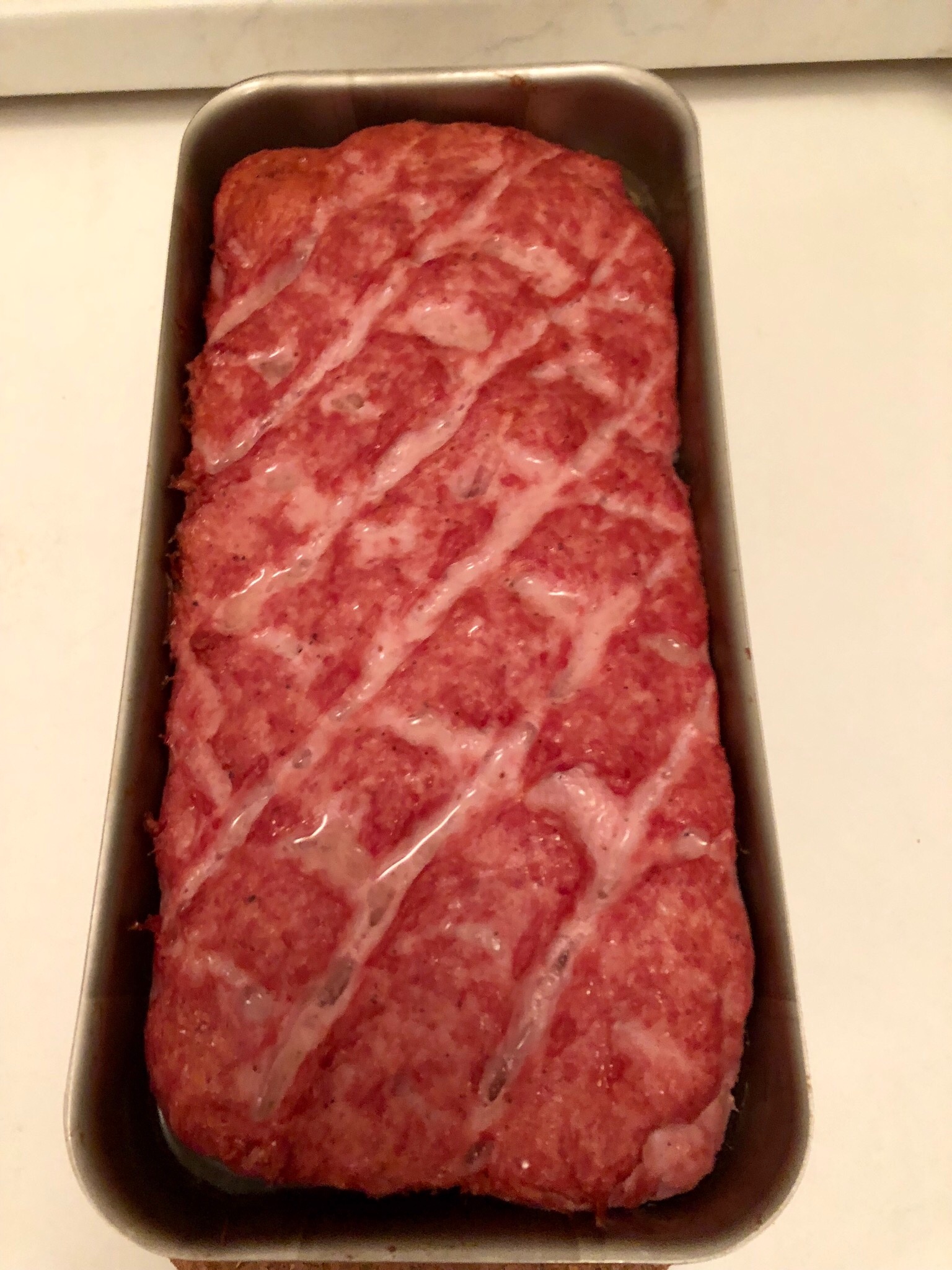 Irgendwie wurde die Masse heute nicht so schön schlotzig wie sonst. Na mal schauen wie später das Ergebns aussieht. Aktuell ist er seit ca. 20 Minuten im Backofen und die Kerntemperatur wird vom WLAN-Thermo Mini überwacht.