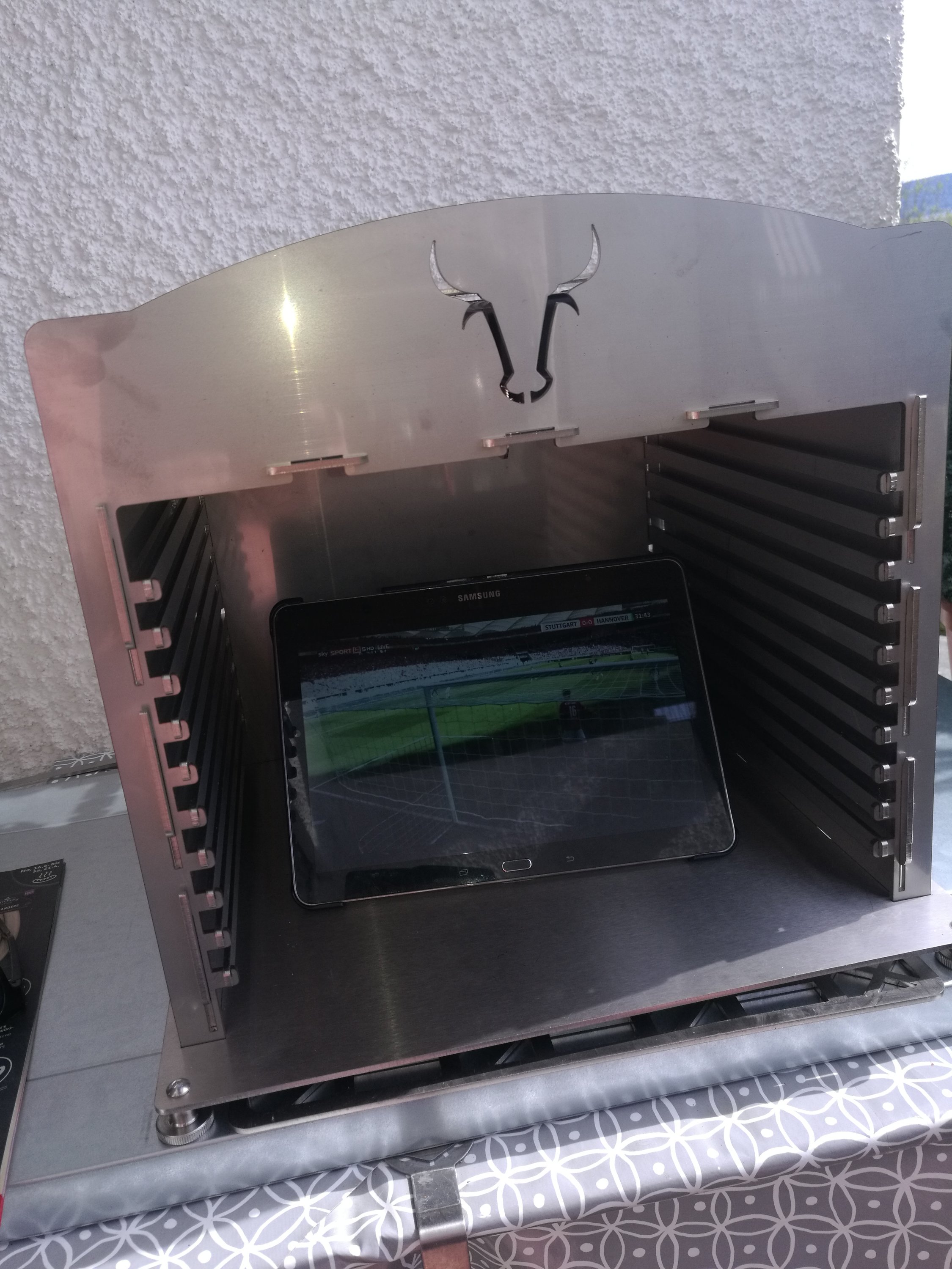 Das Tomahawk Steak liegt noch im Smoker,gibt es dann wenn Fussball fertig ist und Kerntemperatur von 52 Grad erreicht ist. Dann Tablet raus,Steak rein