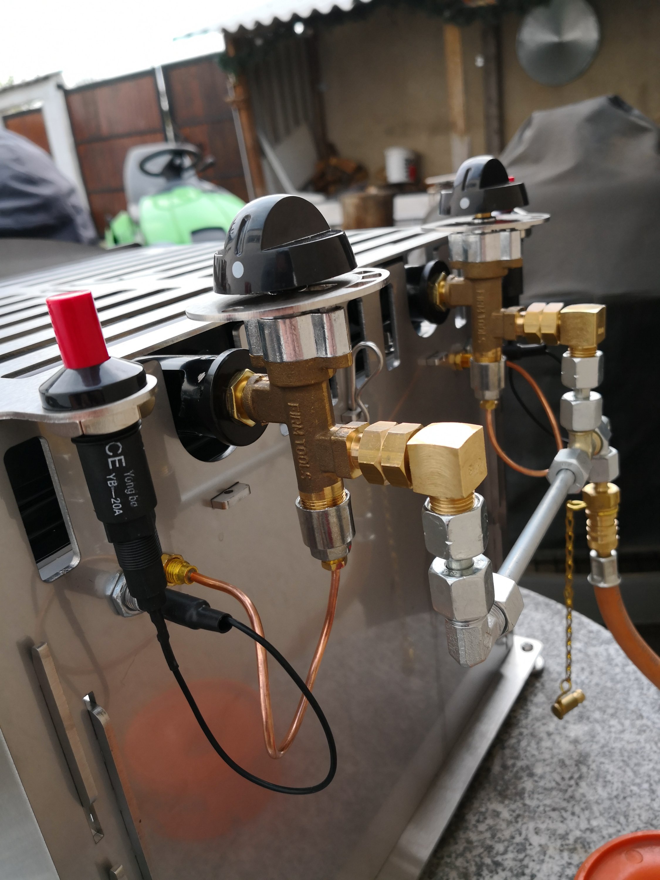Nach 2-3 Minuten fällt mir schon auf das der eine Brenner nicht so brennt wie der andere. Kupferrohr ist im grossen Radius gebogen und soweit alles fest verschraubt. Ich hatte die silberne Verschraubung des Thermometers geöffnet, da ich sonst die Düse / den Regler nicht am bereits montiertem Hitzeschutz vorbei hätte drehen können. Hat jemand Vorschläge?