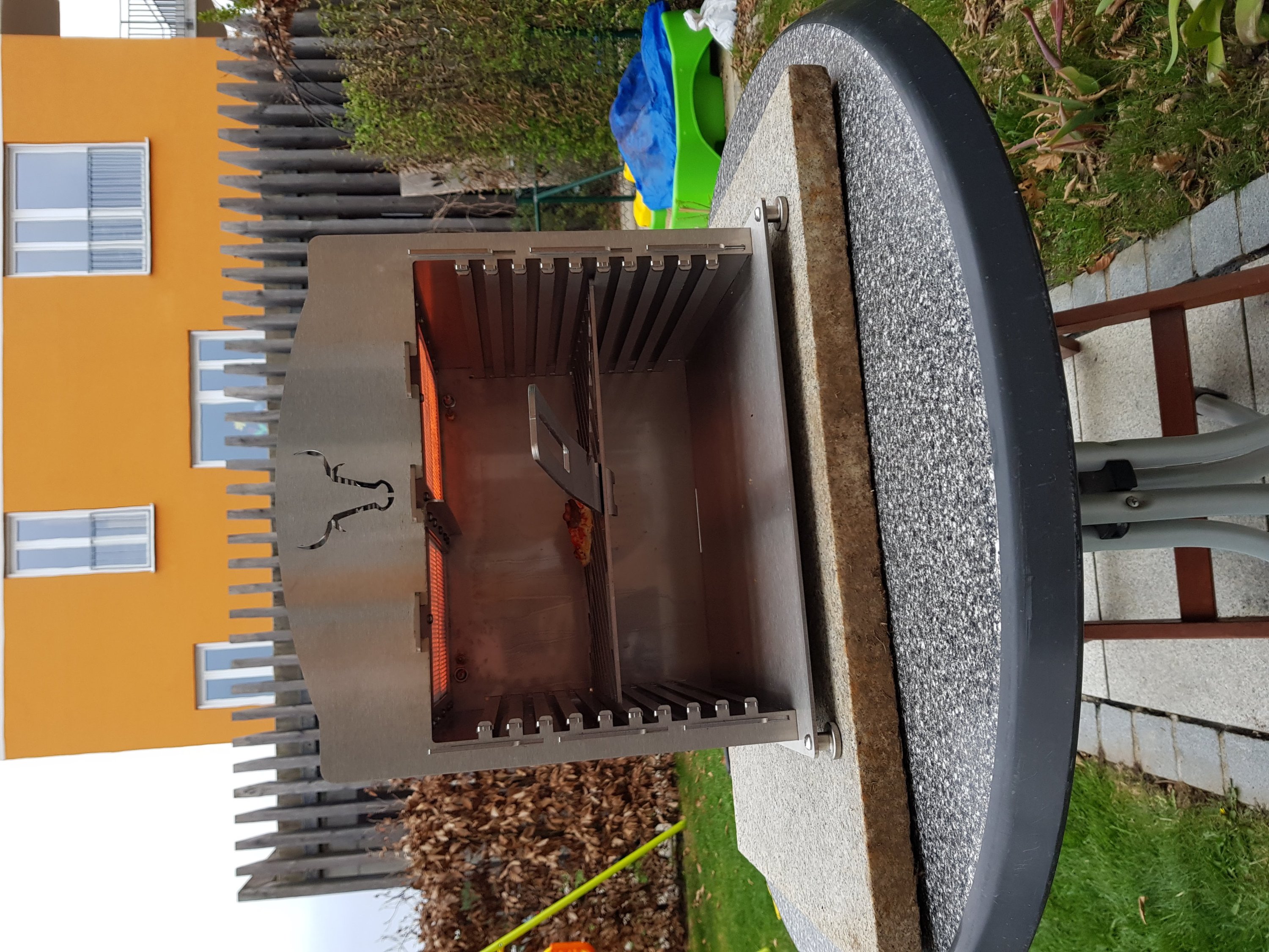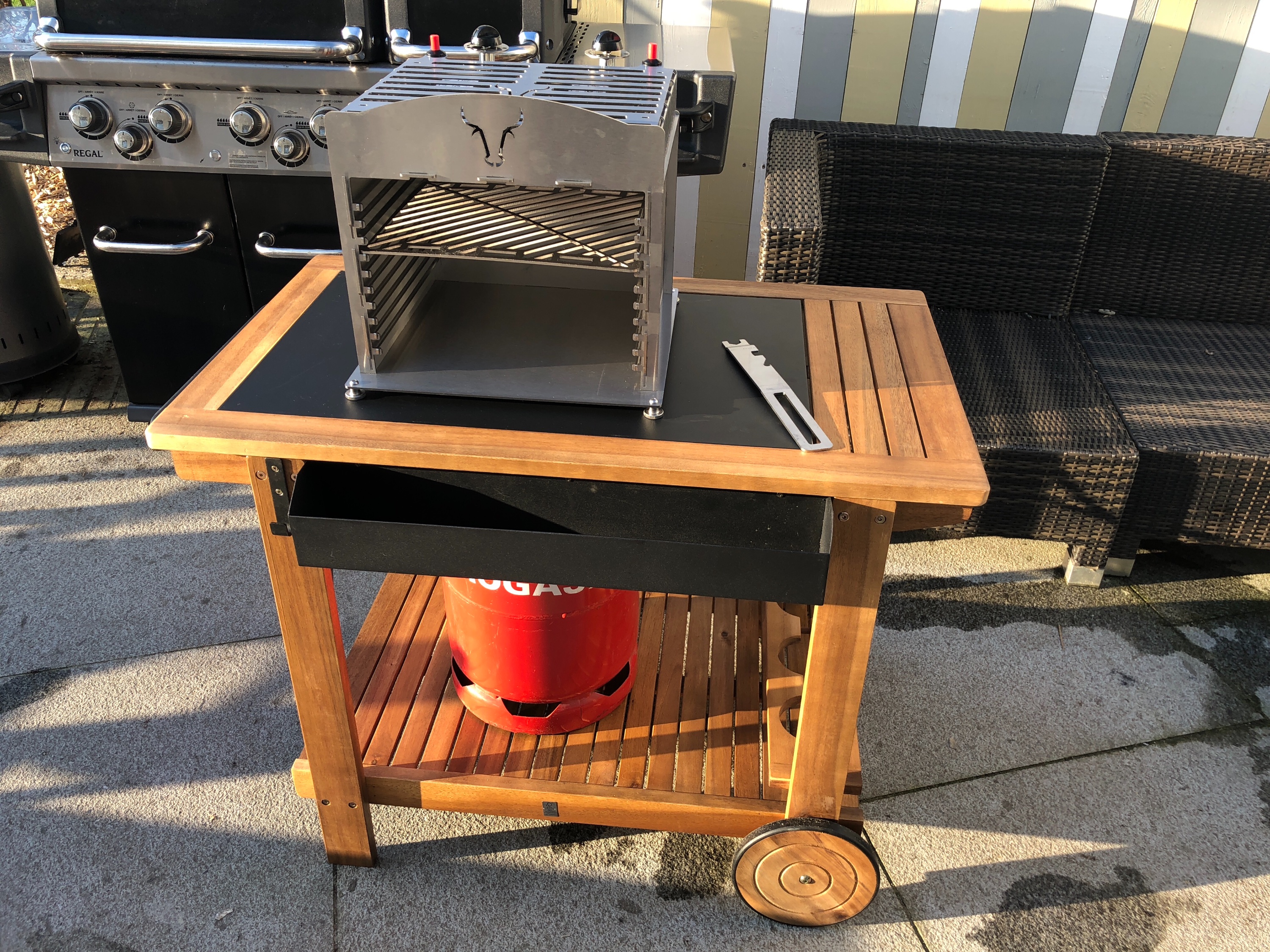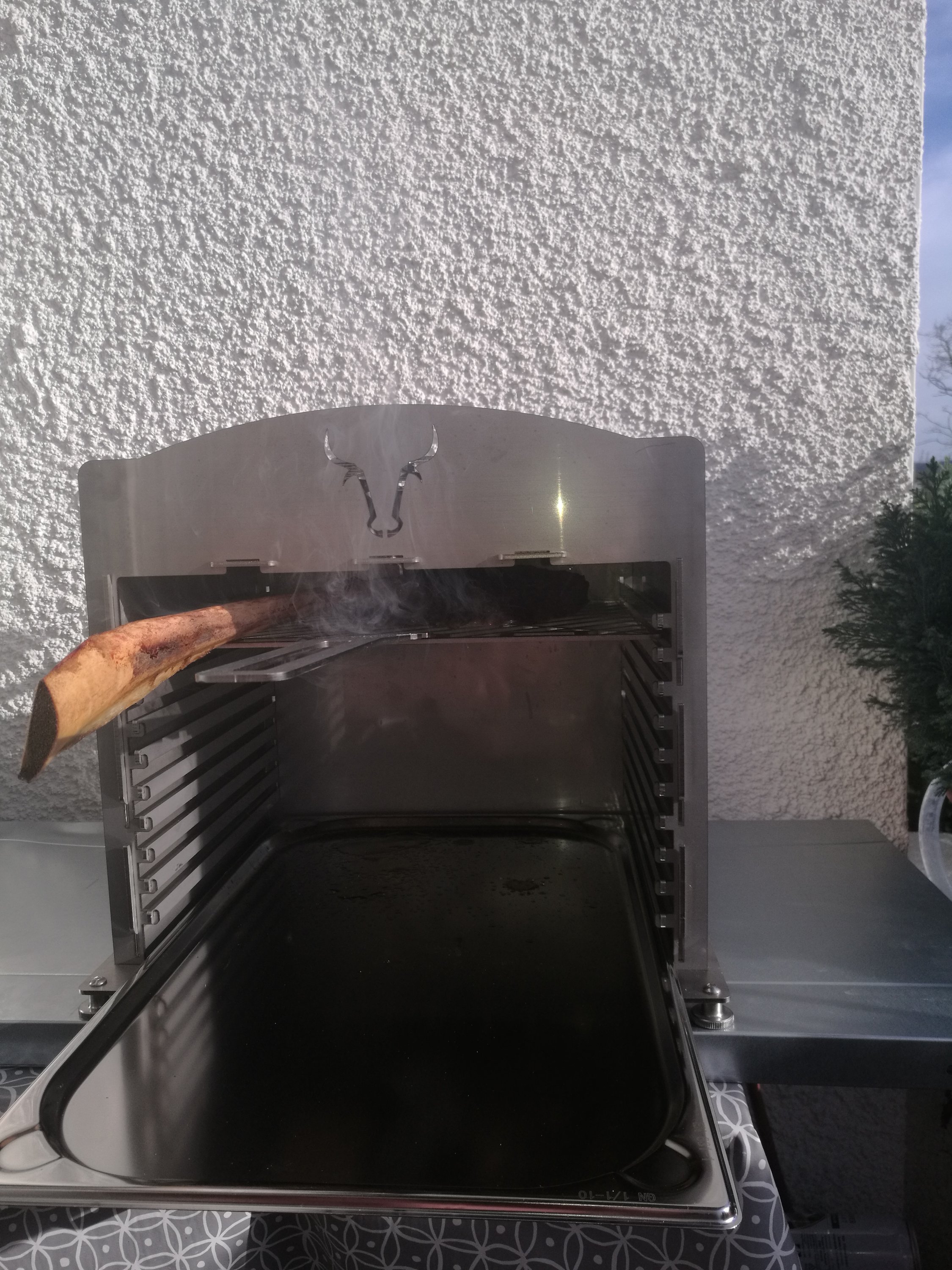 Möchte mich hier auch nochmal in aller Form bei den Organisatoren bedanken. Der OHG kam am Freitag bei mir an. War das WE unterwegs aber zum Glück hatte es gereicht um ihn am Sonntag noch aufzubauen und einzuweihen. Ergebnis: Super klasse das Teil. Auf der zweiten Schiene ging es mir ehrlich gesagt schon fast zu sehr ab. Das waren dank recht dicker Steaks auch nur wenige mm Abstand zu den Brennern, da wird dann jede Ungenauigkeit im Steak schneiden gleich mit schwarzen Stellen bestraft. Auf der Stufe eins weiter unten gings aber immer noch sehr gut ab.