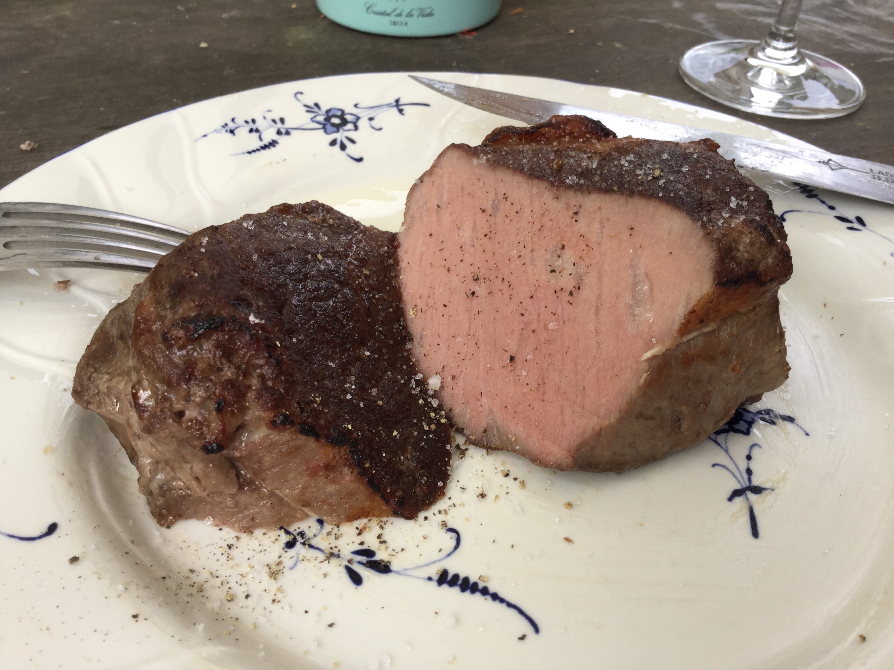 Ist das Pfeffer/Gewürze auf dem Steak ? Das lasse ich vor dem Grillen immer weg.