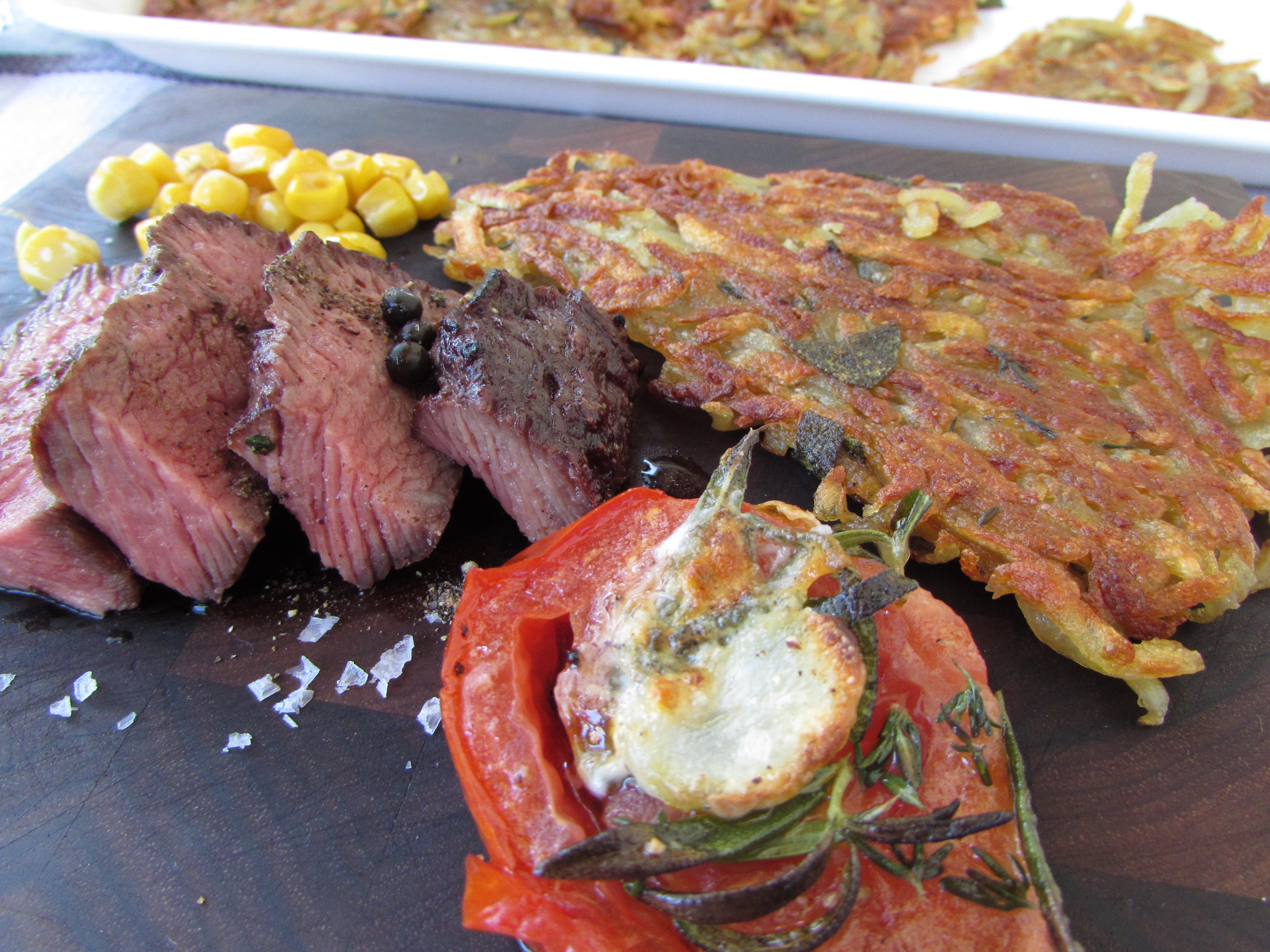letzten gab's wieder was ganz Feines. Flat Iron und gegrillte Tomatenscheiben aus dem OHG und dazu Kartoffel-Rösti