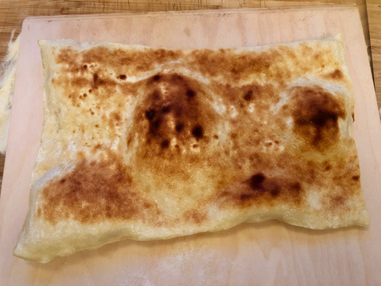 Vorgebacken nur von einer Seite auf mittlerer Höhe von unten sah das dann so aus: