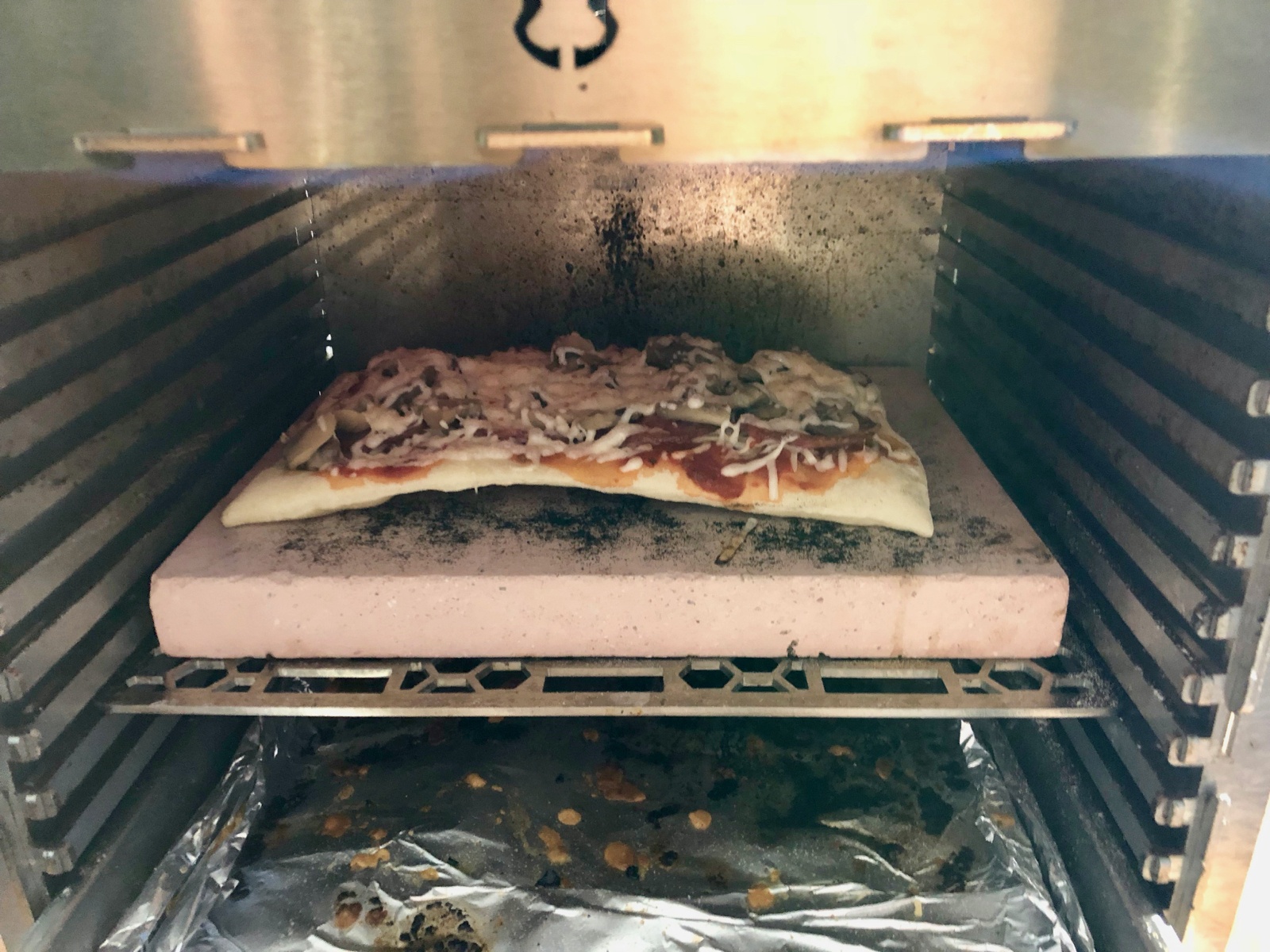 Zunächst habe ich den Stein ganz oben 10 MInuten bei Vollgas (50mbar) aufgeheizt.