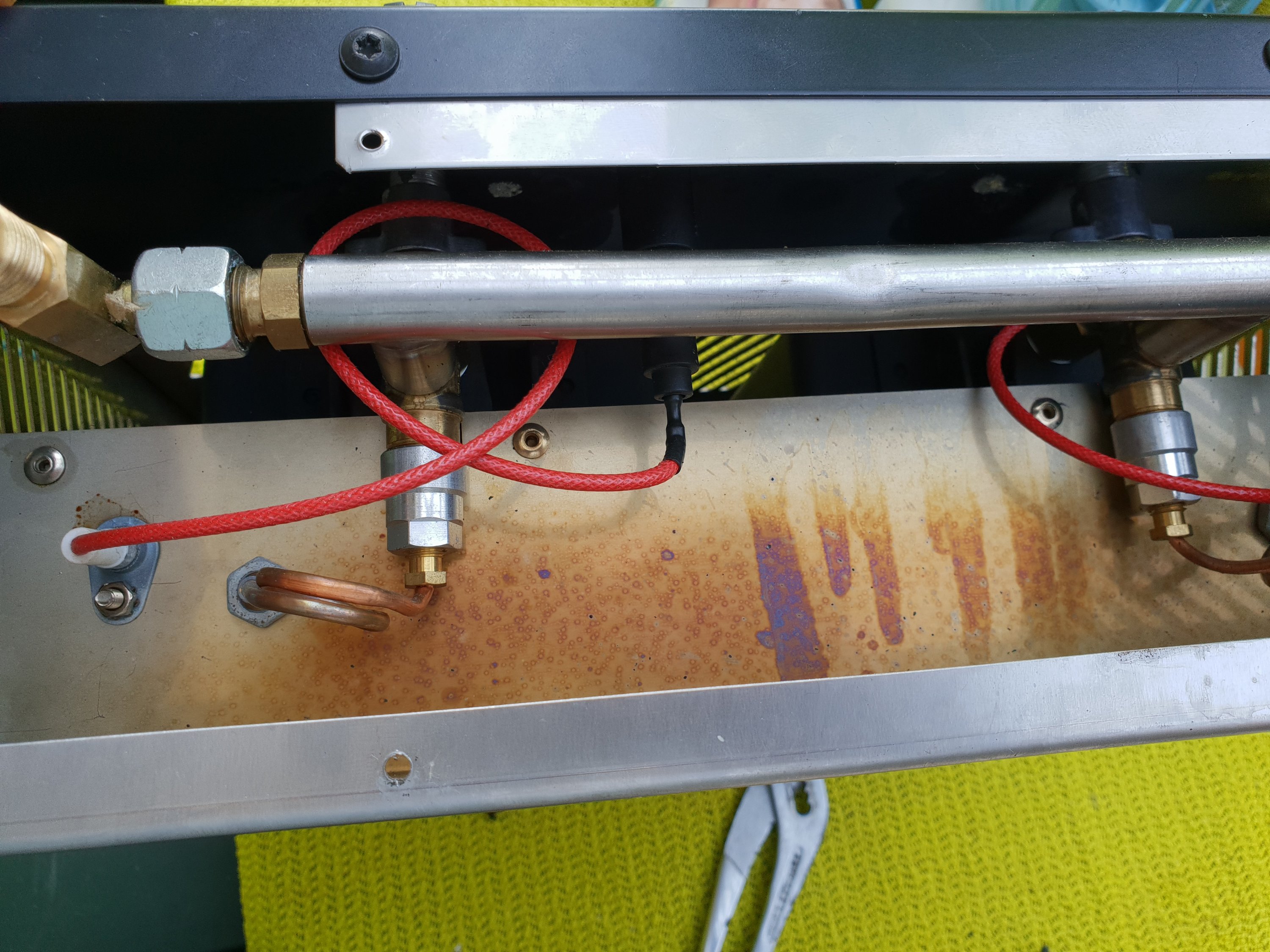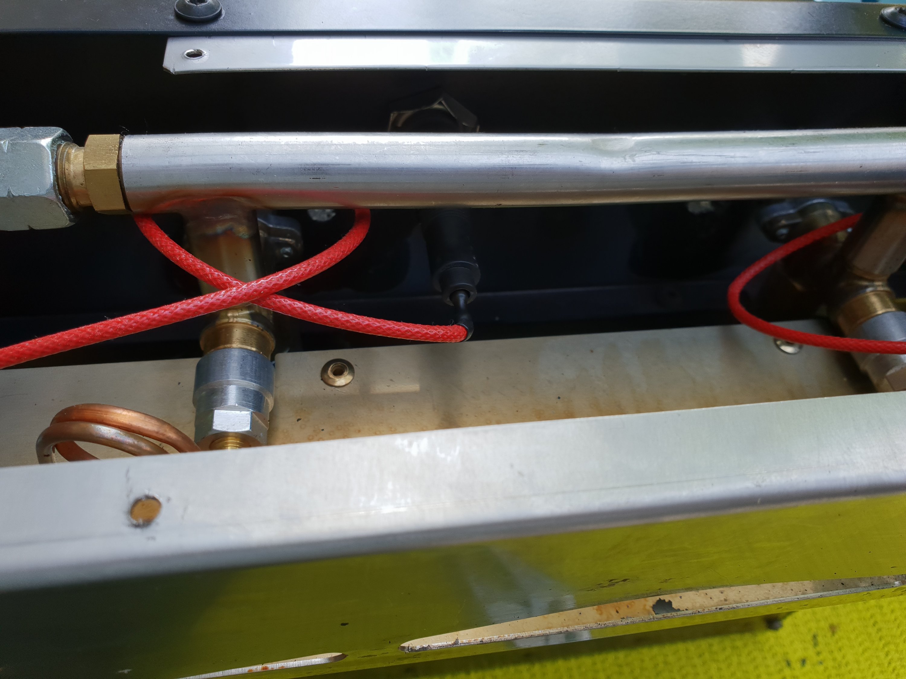 Aber ich habe mal in Martys Foto die Stelle rot eingezeichnet, wo das Gewinde durchbohrt werden muss, direkt oberhalb der Auflageplatte: