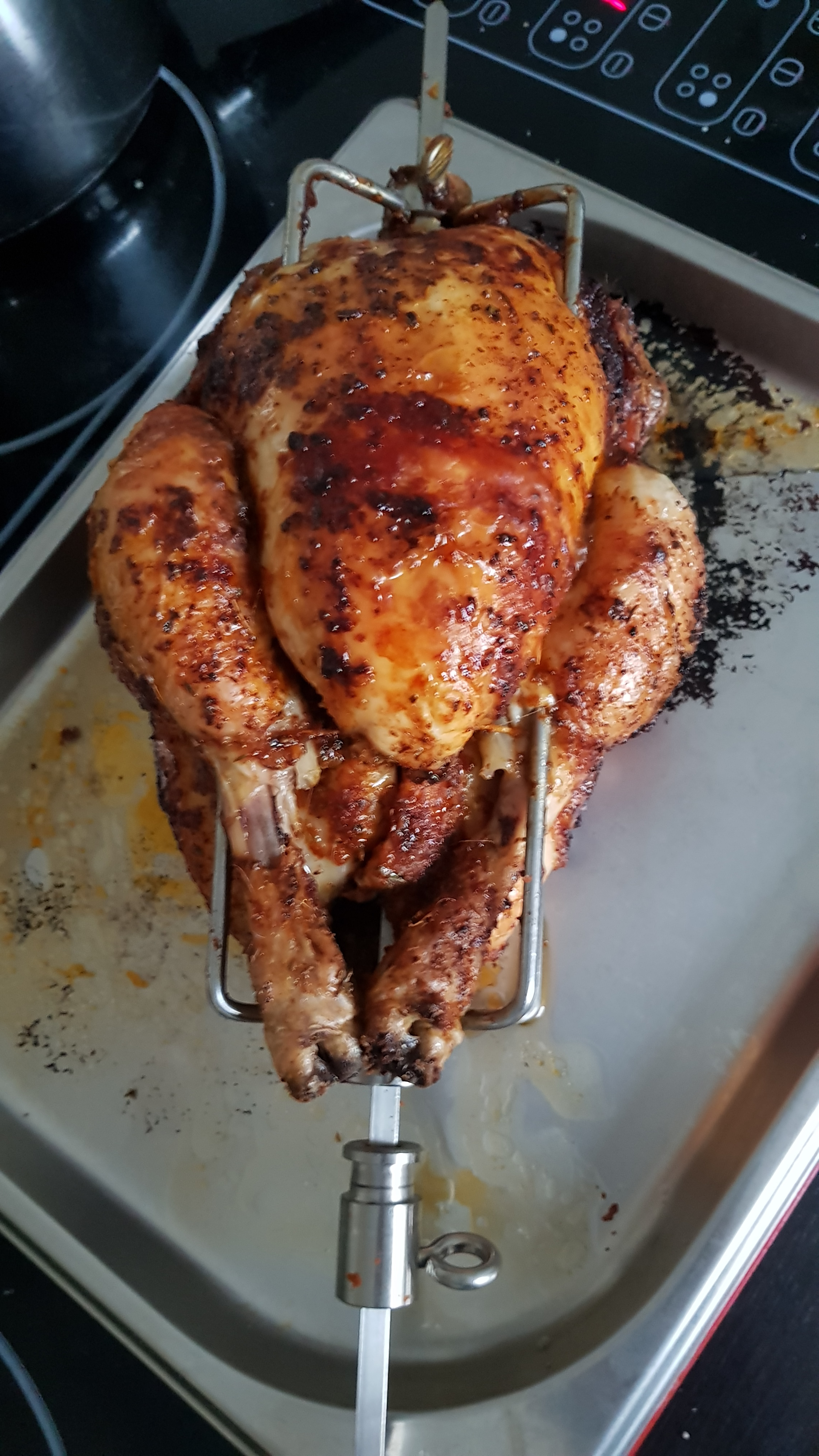 Was soll ich sagen: das Hähnchen war perfekt - innen durch und saftig, außen knusprig braun. Gerne immer wieder... :rockout: