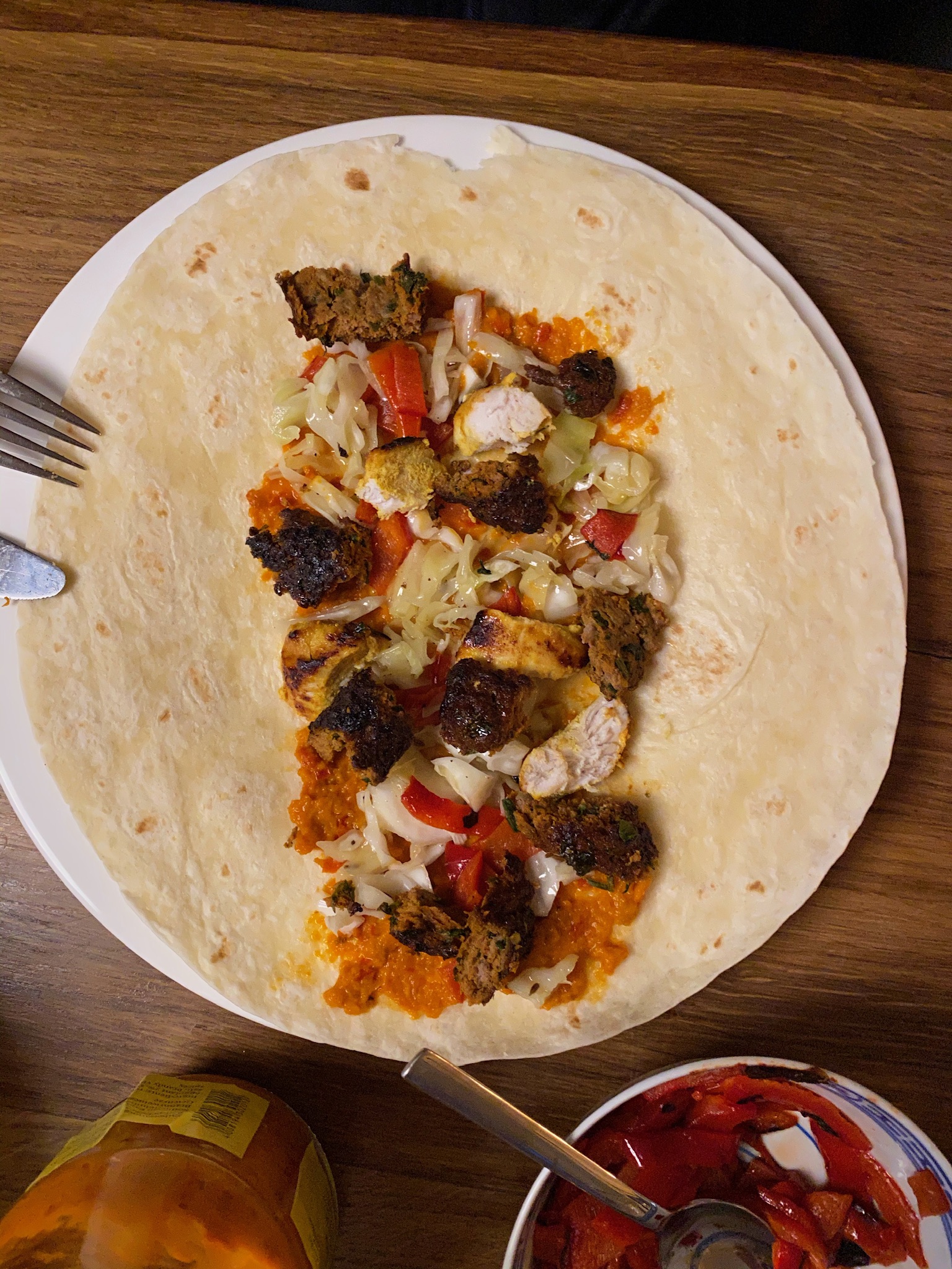 Der vierte Spies ist eine Hähnchenbrust in Joghurt mit ein paar Gewürzen eingelegt.