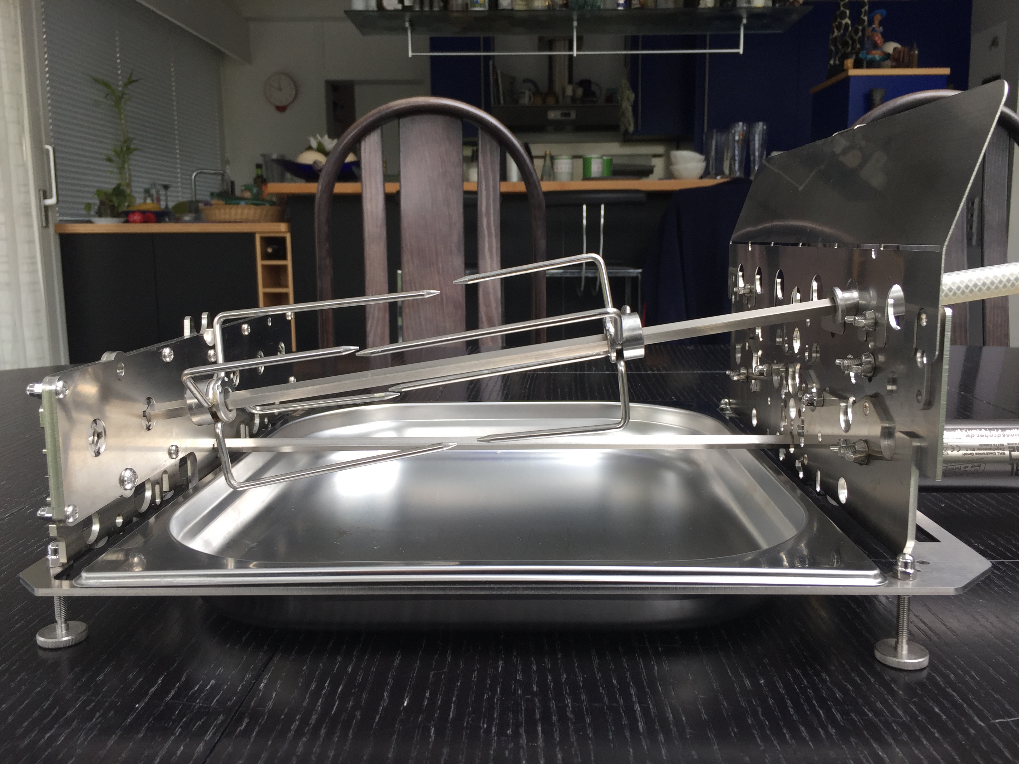 - die Antriebswelle stets tiefstmöglich und waagerecht verlaufen lassen. Damit hat man auch schön Abstand zum Drehspieß bzw. zum Hähnchen - es kann dann auch größer sein. Das solltest du ändern und auch die Motorhalterung direkt am Einschubrahmen anbringen, d.h. ohne Zwischenhalter