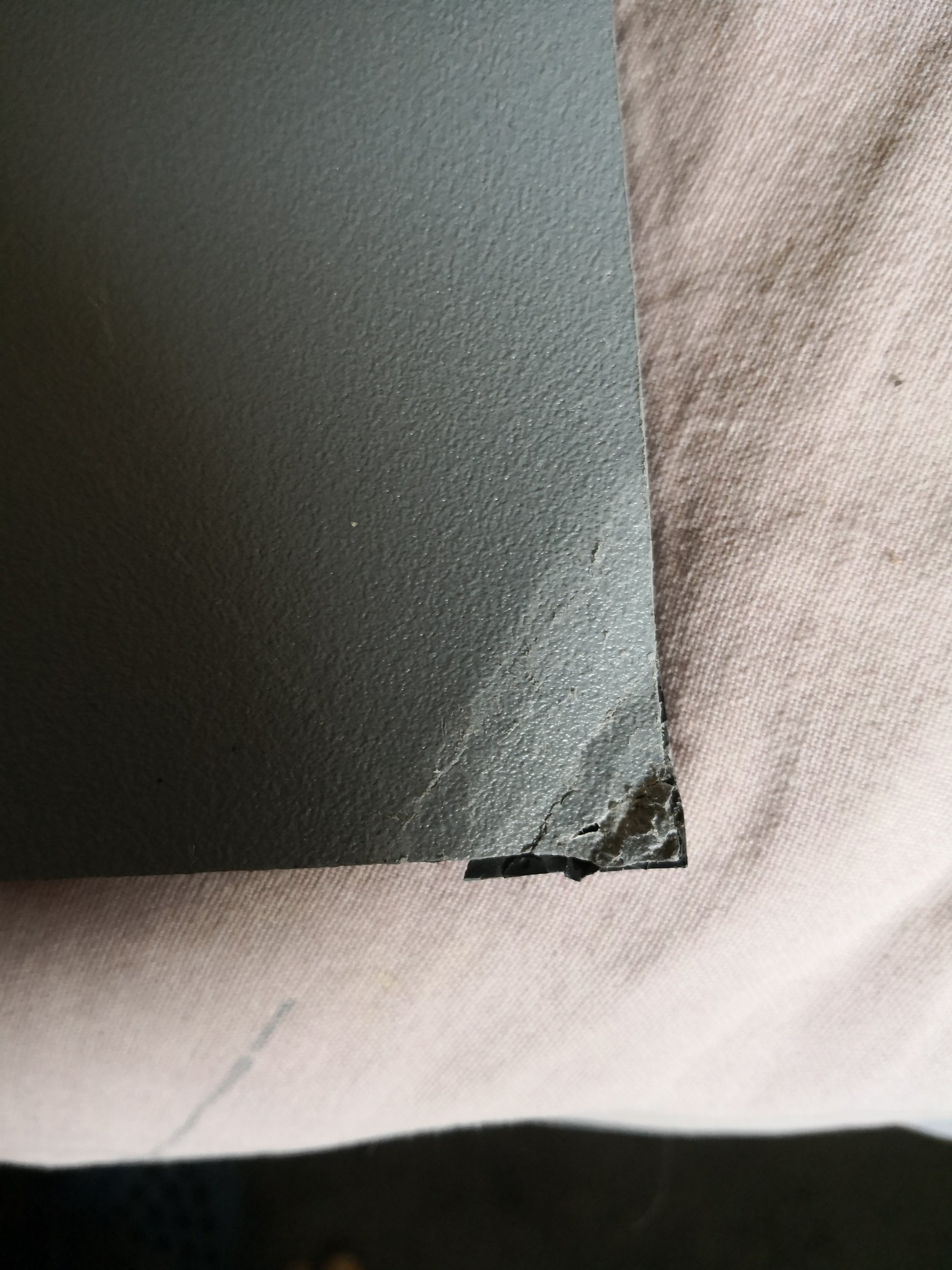 Leider eine verbogene Ecke und auch Kratzer am Rand . . . :crying: