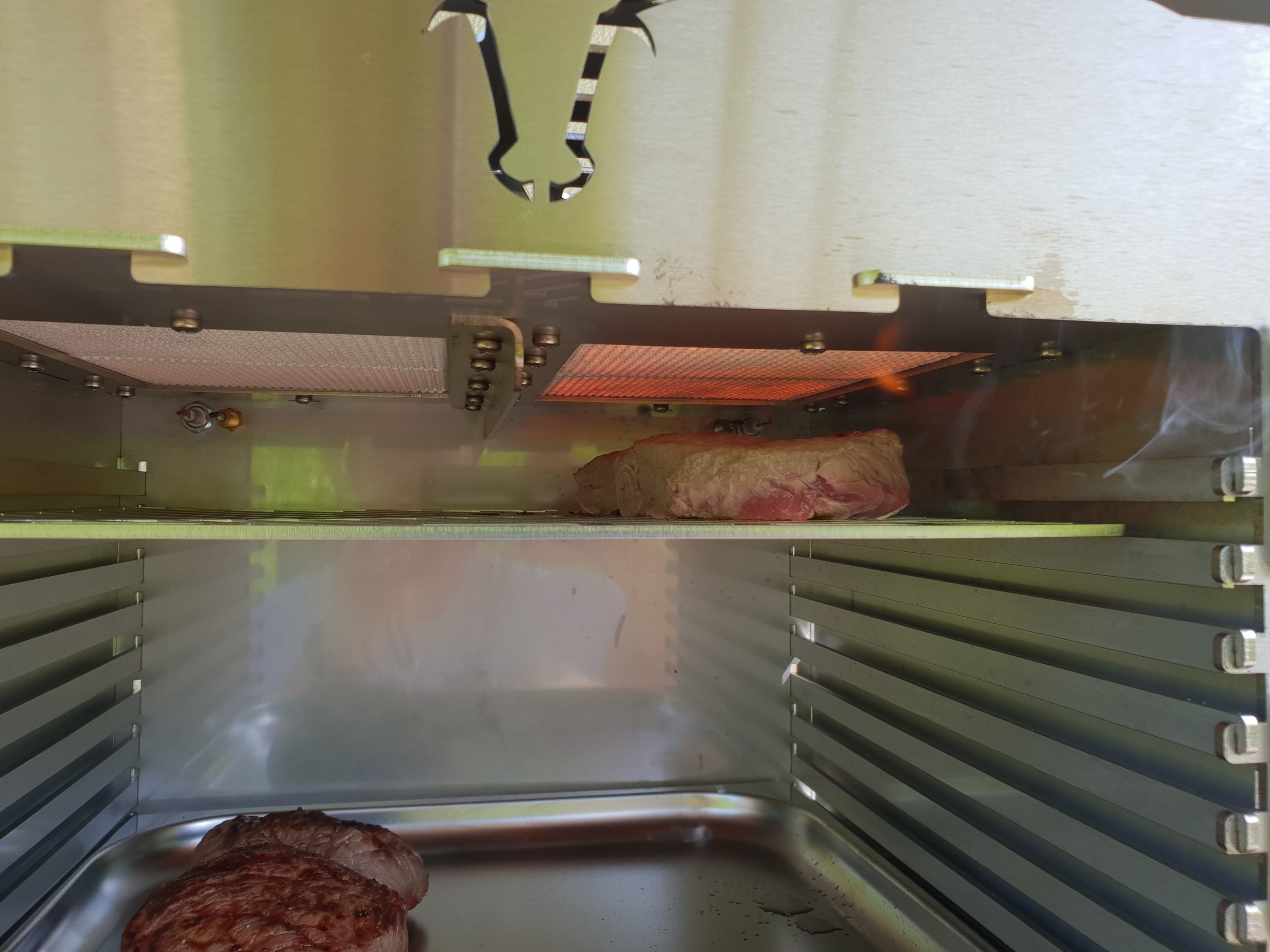 Der rechte Brenner wurde übrigens leider bei der letzten Verwendung mit Fleisch so schwarz wie er jetzt ist. Grillen mit Flammenhof ist eine dumme Idee.