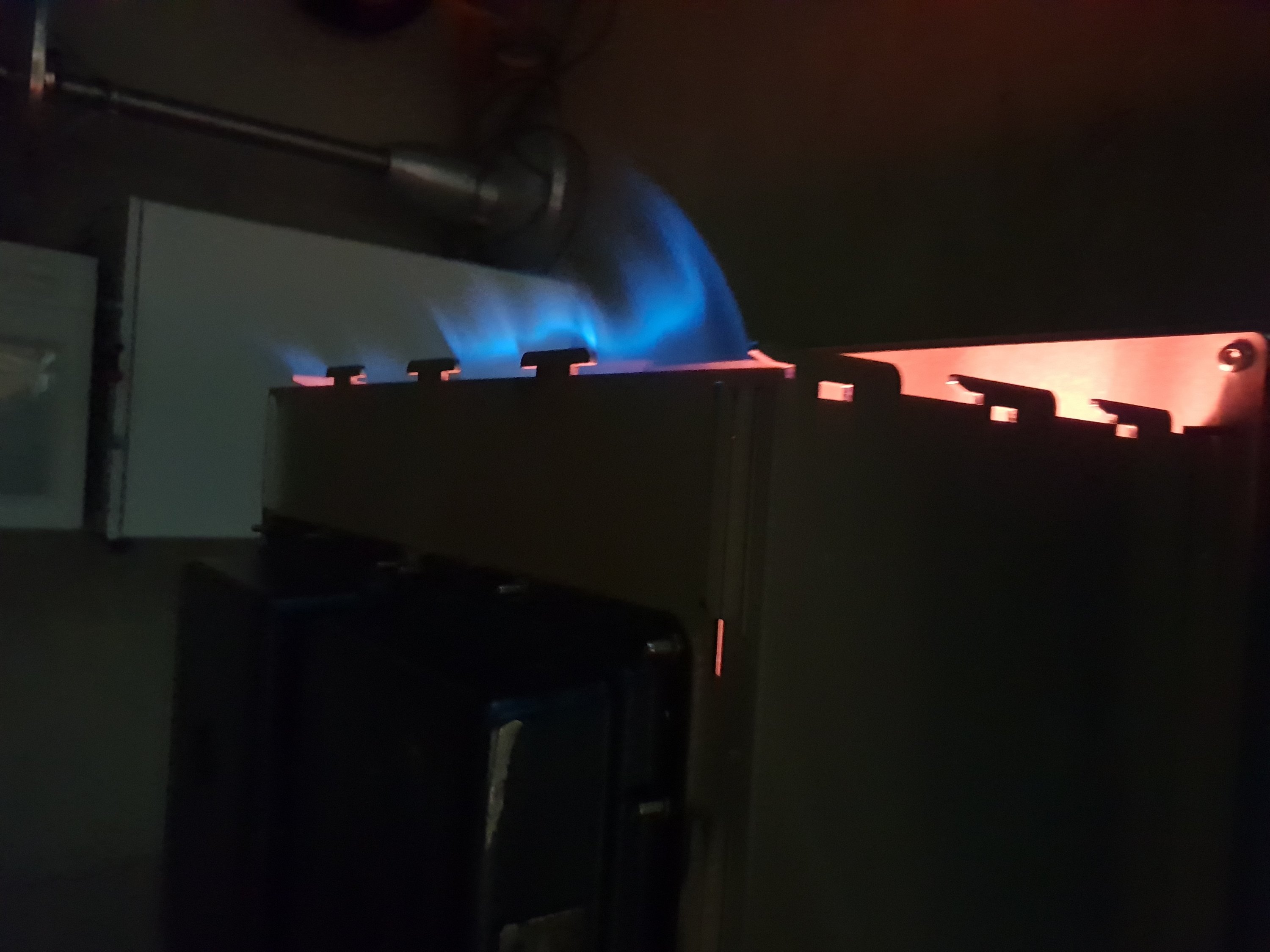Bevor einer was sagt: Ich stehe nicht unterm Dach sondern davor. Das Ergebnis ist unverändert. Nächste Aktion ist dann wohl der Ausbau des Brenners. Habe aber wenig Grund zu glauben dass das dann anders aussehen wird. Was mich am meisten irritiert ist ja dass am Anfang bis auf einen kleinen blauen Flammenhof (siehe Seite 7) alles funktioniert hat. Brenner waren beide orange-glühend und sauheiss.
