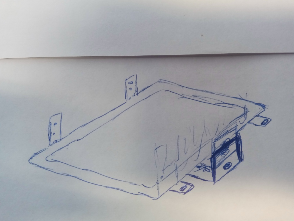 a) Unwissenderweise bin ich in etwa auf diese Schrägstellung gekommen - bin bei 13.5 Grad. Die variable Höheneinstellung sehe ich als Alleinstellungsmerkmal von deiner Konstruktion und habe das deshalb weggelassen und stattdessen die statischen Auflagen gezeichnet.