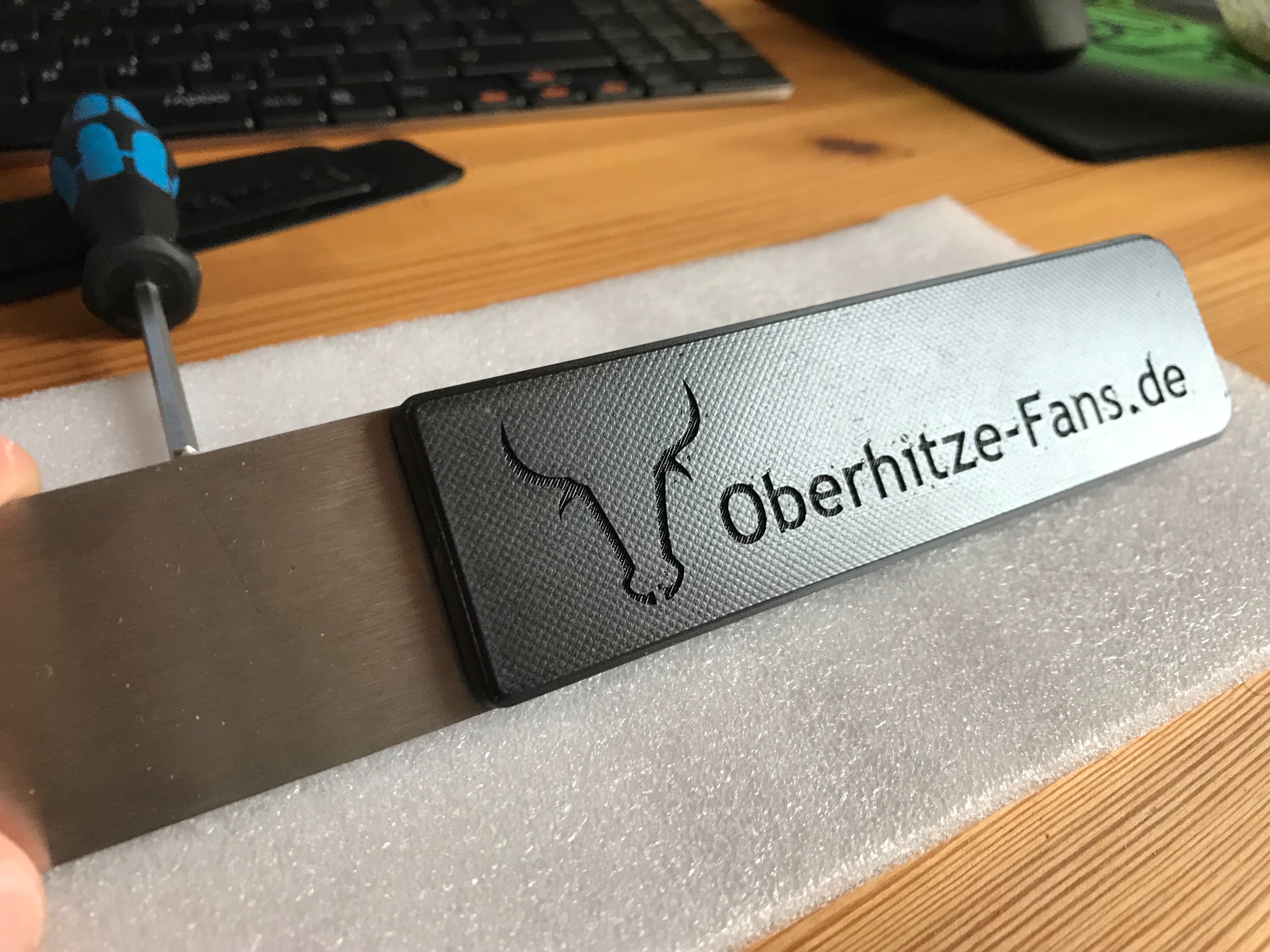 Da es nichts Neues gibt von den Visitenkarten, die Schrift auf der Visitenkarte von [mention]Strickland[/mention] aber allgemein für gut befunden wurde, dachte ich mir, wenn das dann der offizielle Schriftzug für Oberhitze-Fans.de werden sollte und der raugeflogene Patchelor für die Griffe eine SB macht, dann kann er doch die "Offizielle" Schrift gleich verwenden. Dieser 'Schriftzug mit den Flammen drin sollte dann auch im Logo neben dem Köpfchen zu sehen sein, dann kommen wir vielleicht mal zu einer CI.