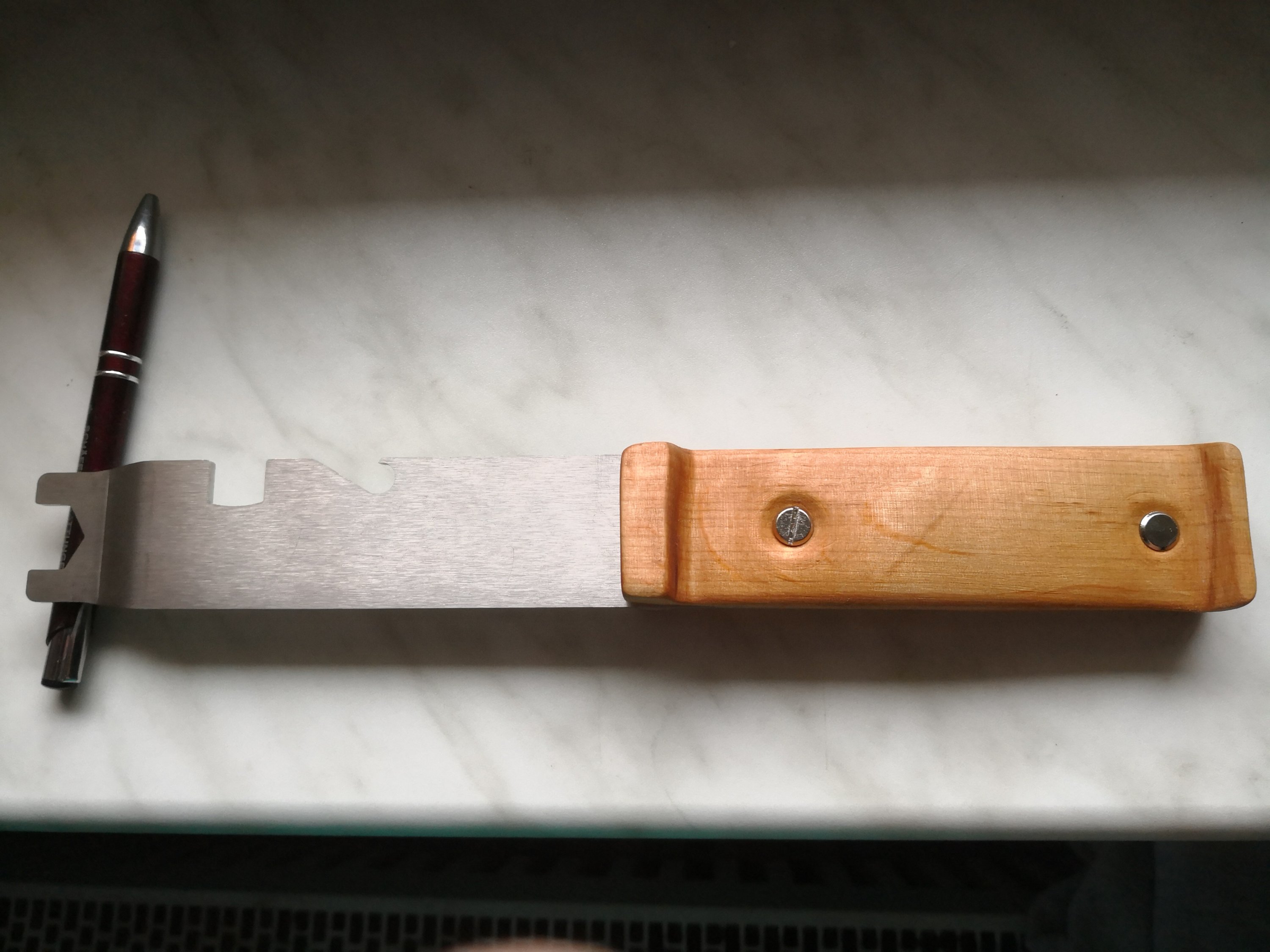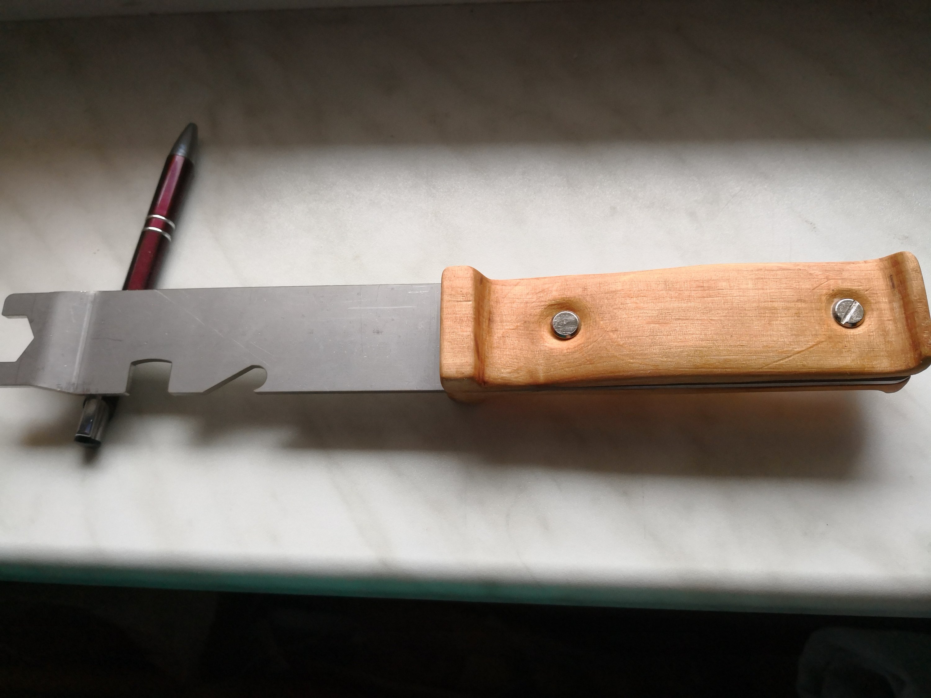 Jetzt ist mein Holzgriff endgültig fertig: Hat Spaß gemacht! Und jetzt gehe ich Salami und Schinken räuchern!
