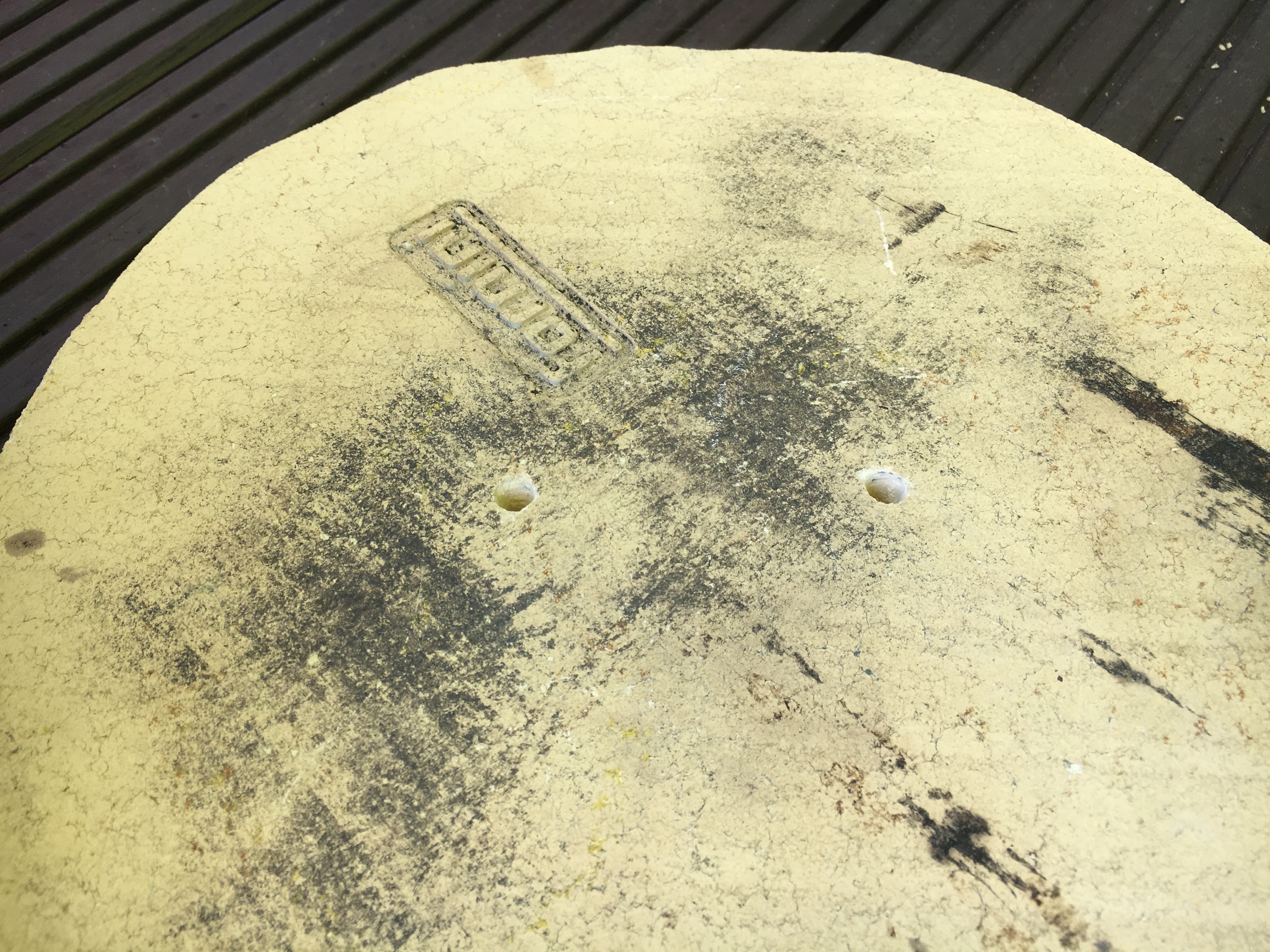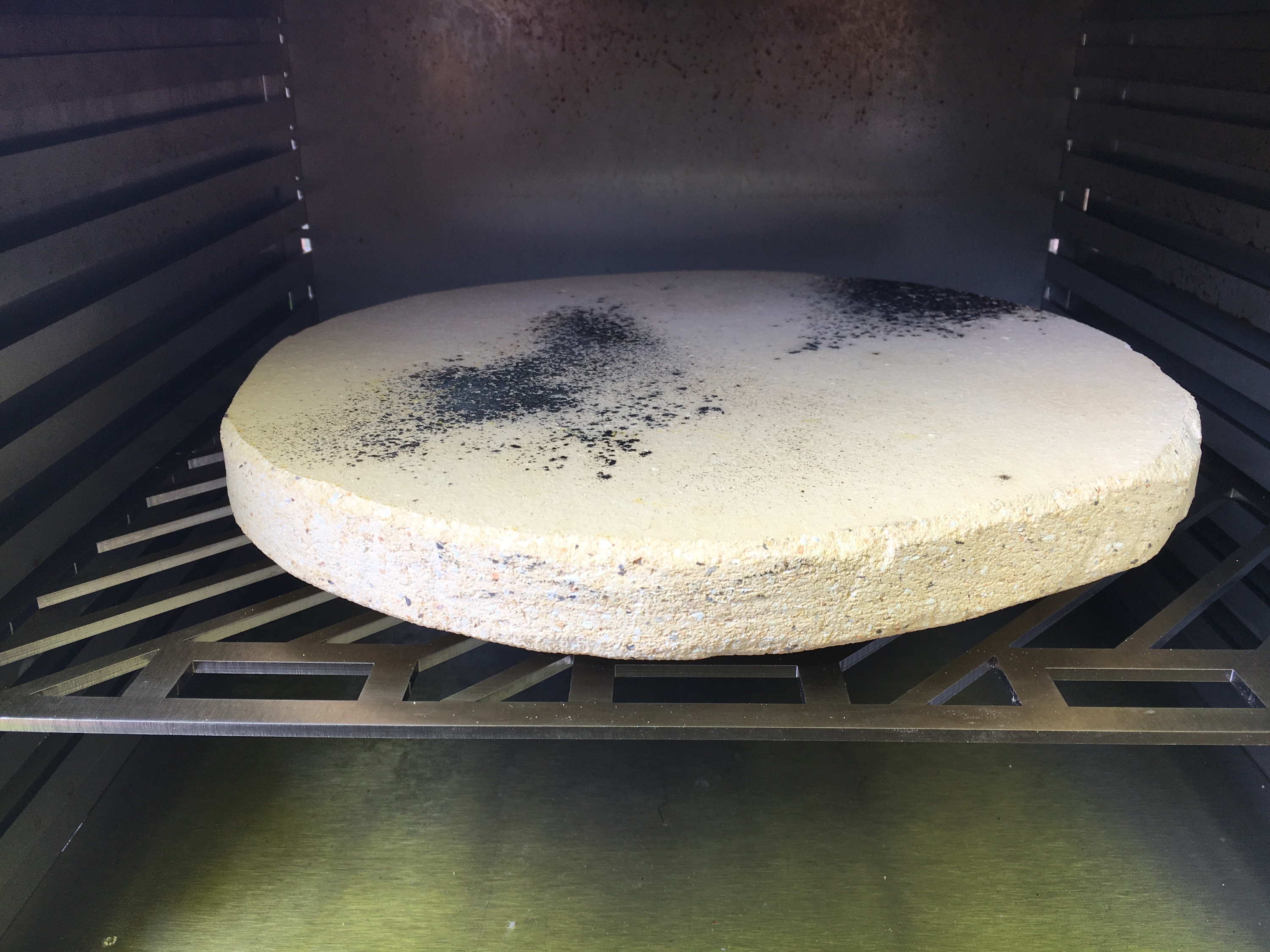 Angefangen hab ich damit, daß ich den Pizzastein einigermaßen rund geflext habe.
