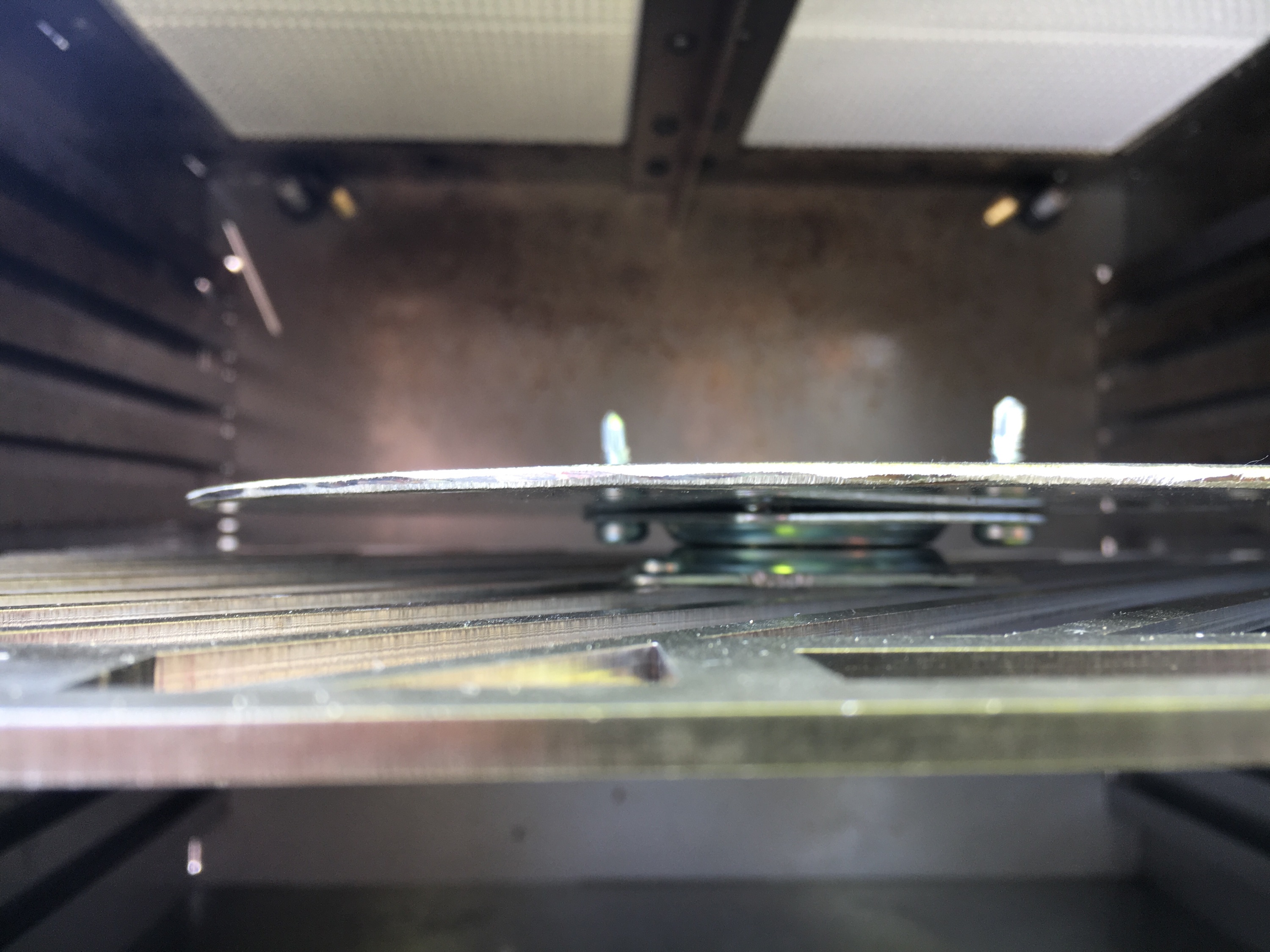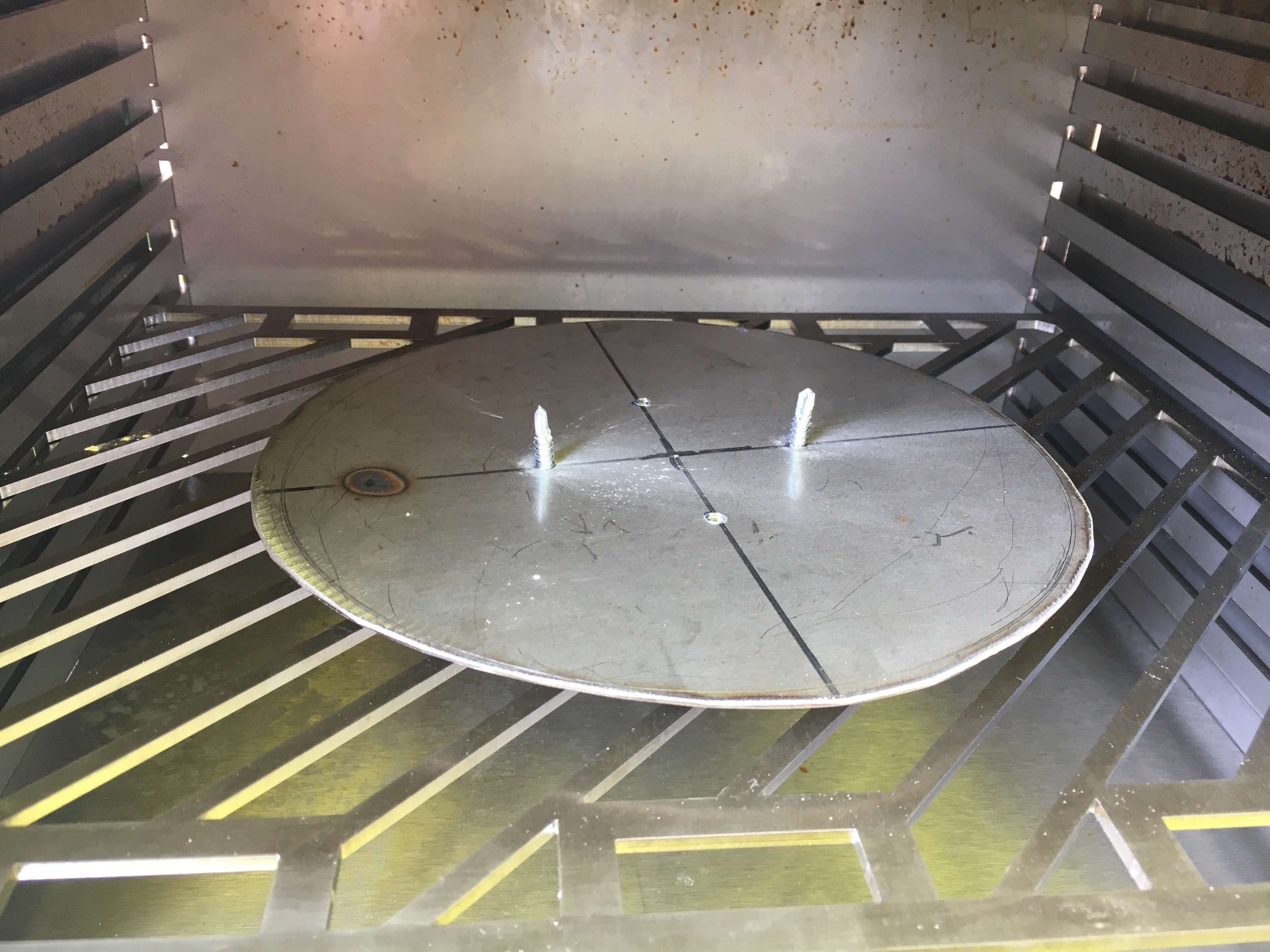 Ebenso das Blech wo der Pizzastein drauf liegt. Die Schrauben die nach oben rauskommen, habe ich zur arretierung des Steins genommen...Löcher noch in den Stein gebohrt.....damit er sich nicht weg dreht.