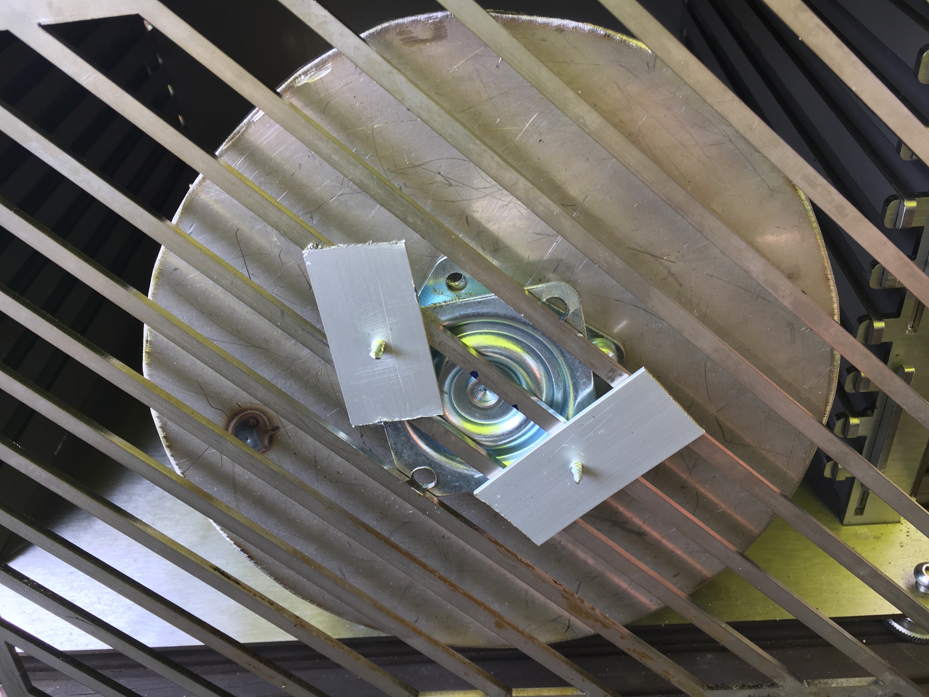 Das Drehlager habe ich auf das Grillrost mit Hilfe von Konterblechen verschraubt.