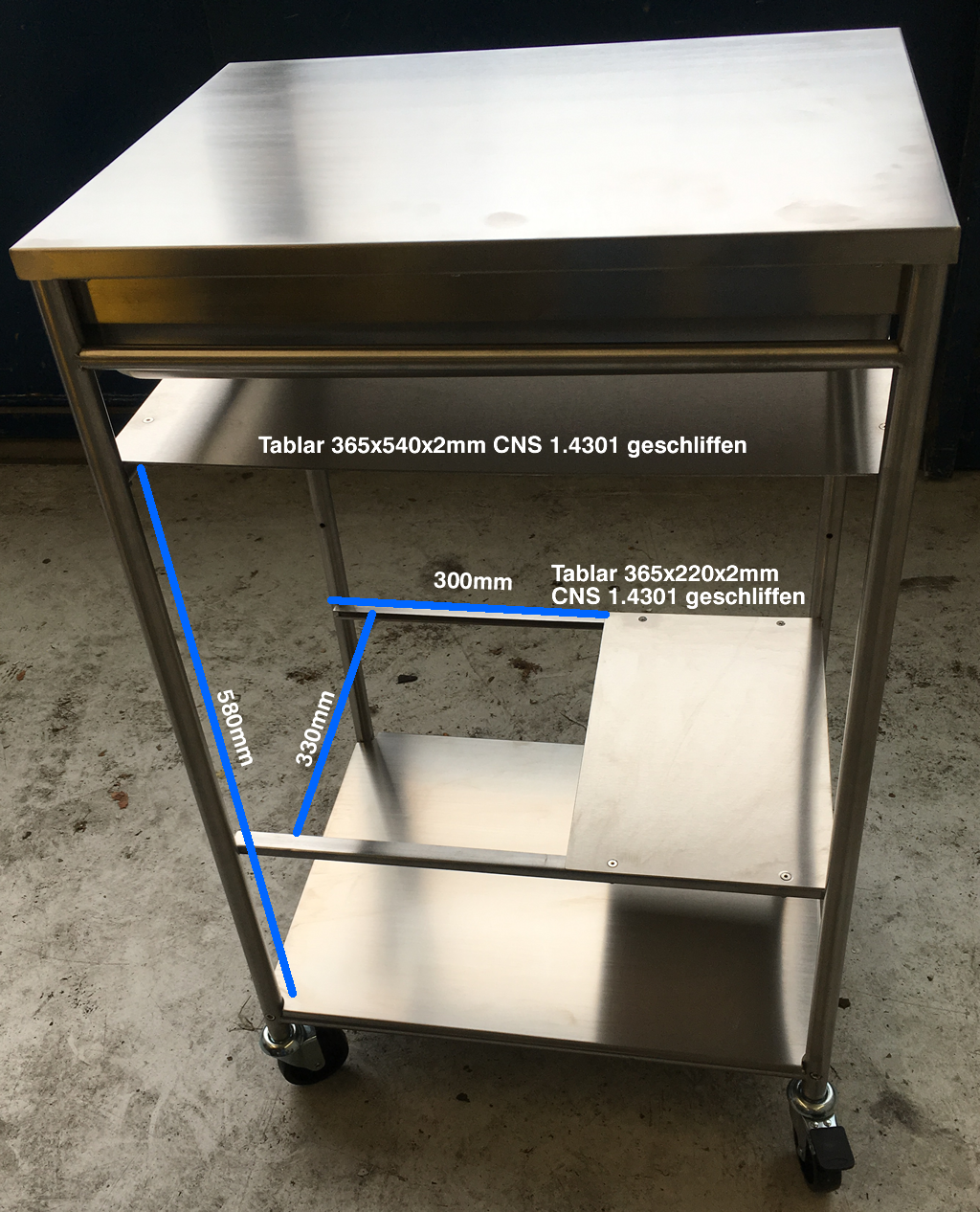 2 x CNS 1.4301 geschliffen, in den Massen: