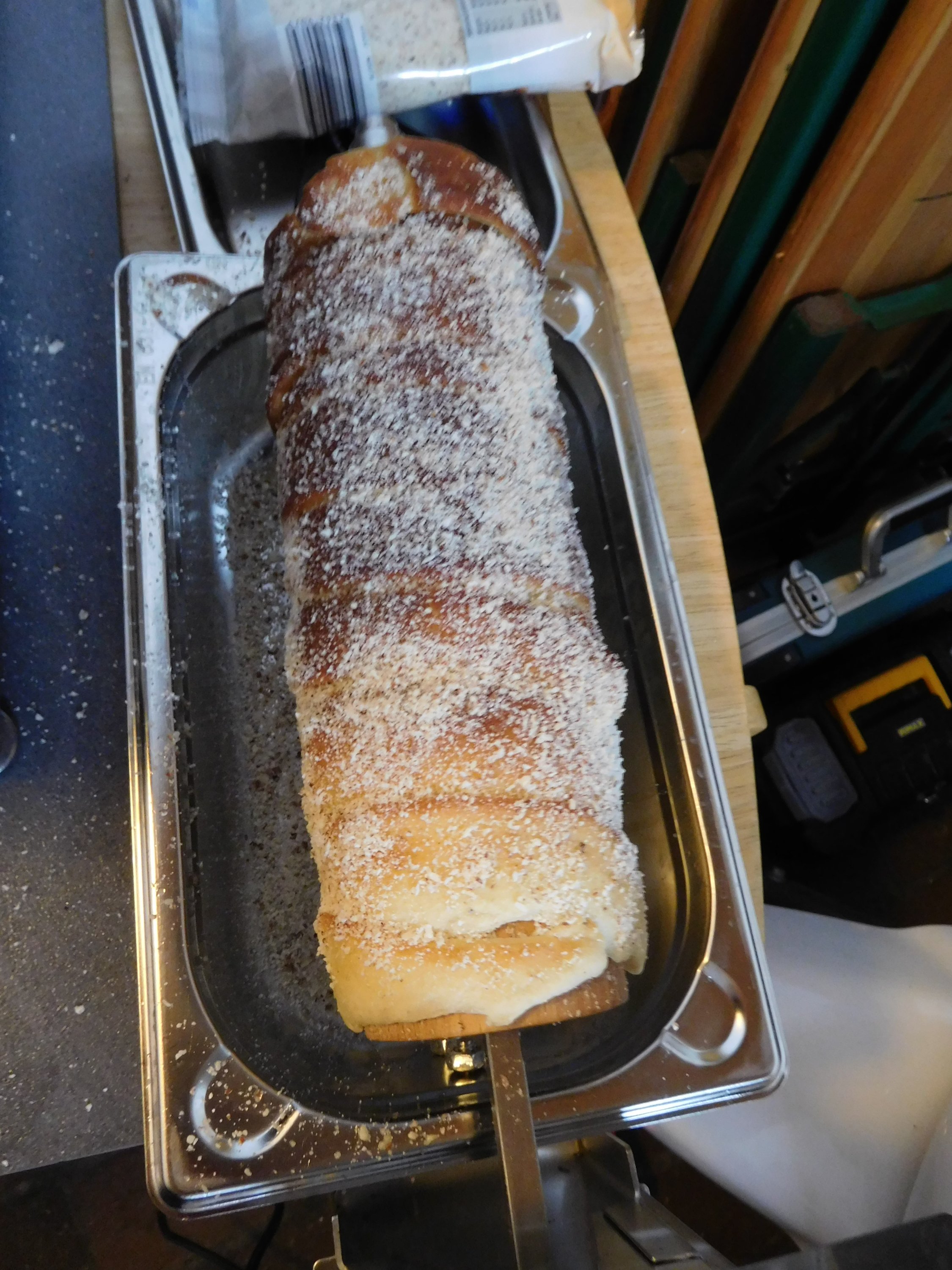 Das Ergebnis war genial und den kommerziellen Baumstriezeln ebenbürtig. Wir haben "nur" mit Zimt/Zucker garniert......oberlecker.