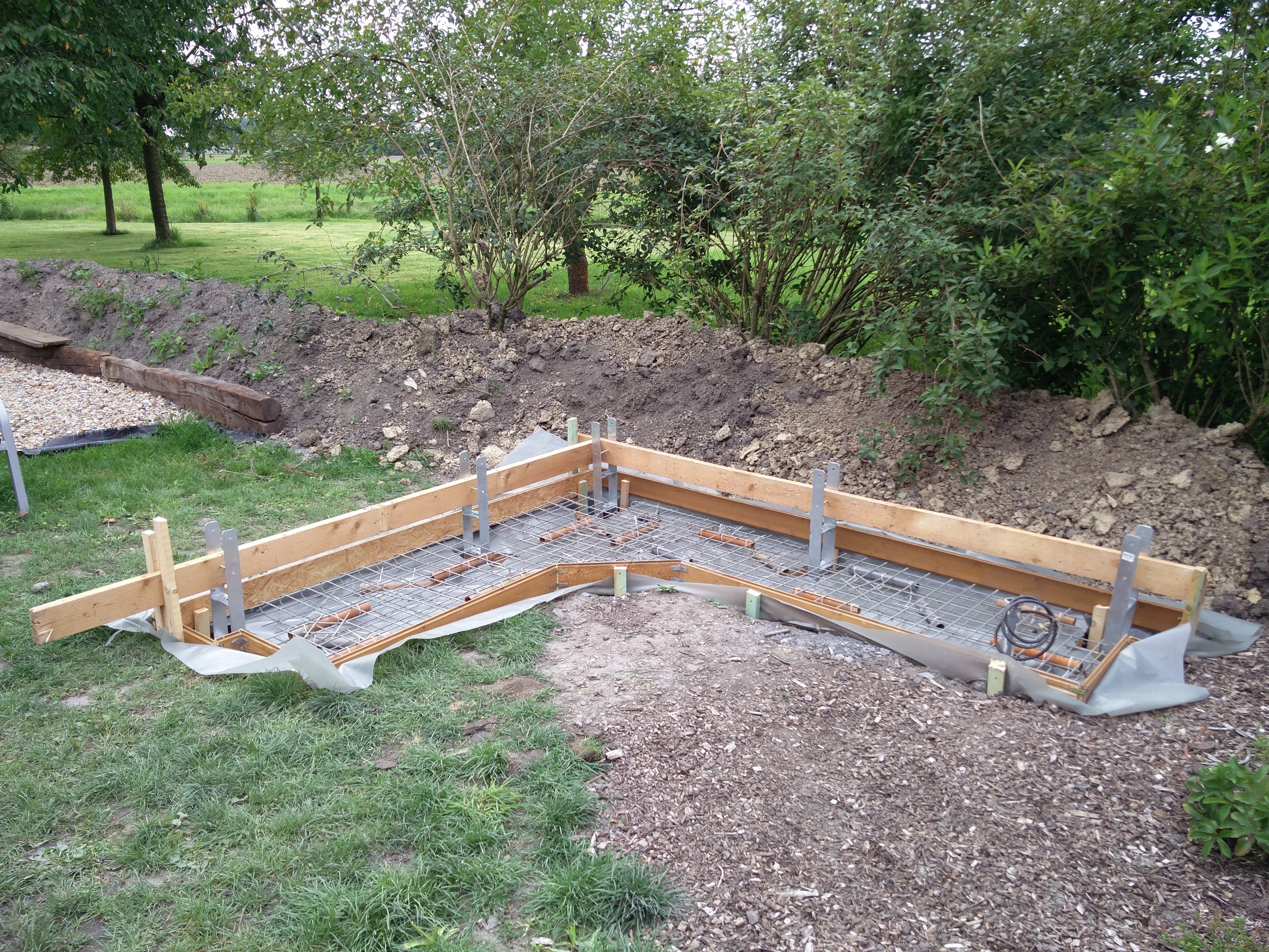 weiter ging es mit dem aushub für das fundament und dem erstellen des fundamentes inkl setzen der h-träger für das ständerwerk.