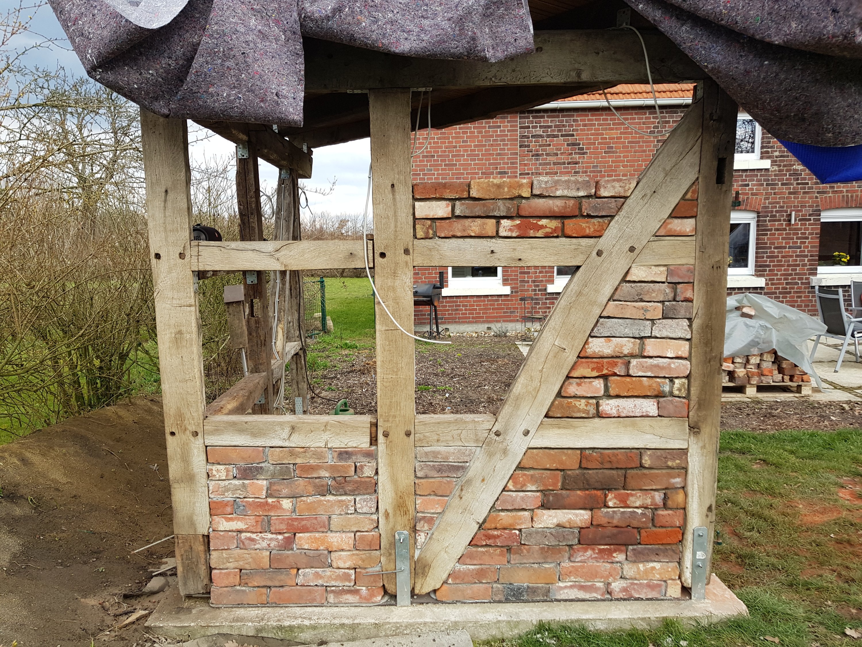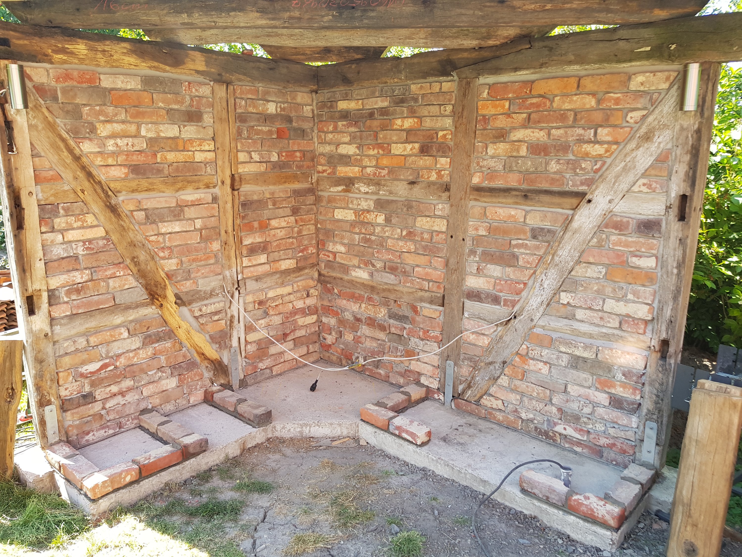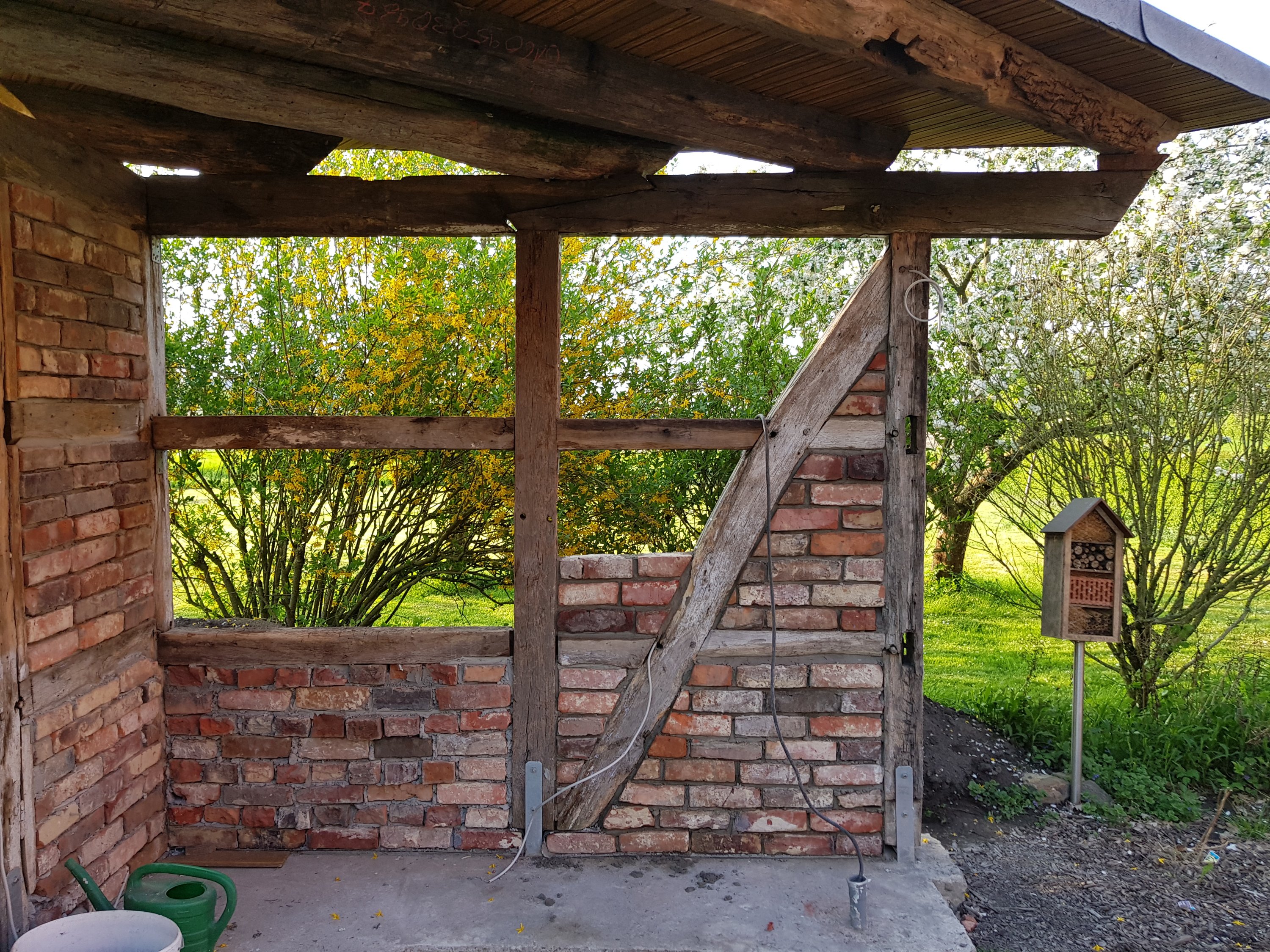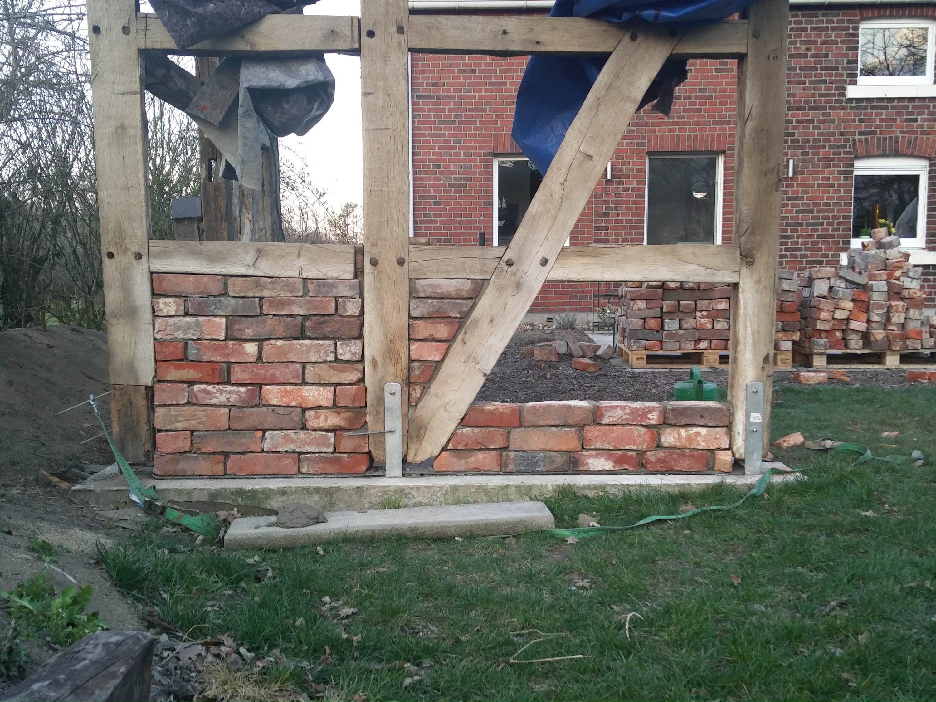 etwas gemauert und die nächsten balken stehen auch provisorisch