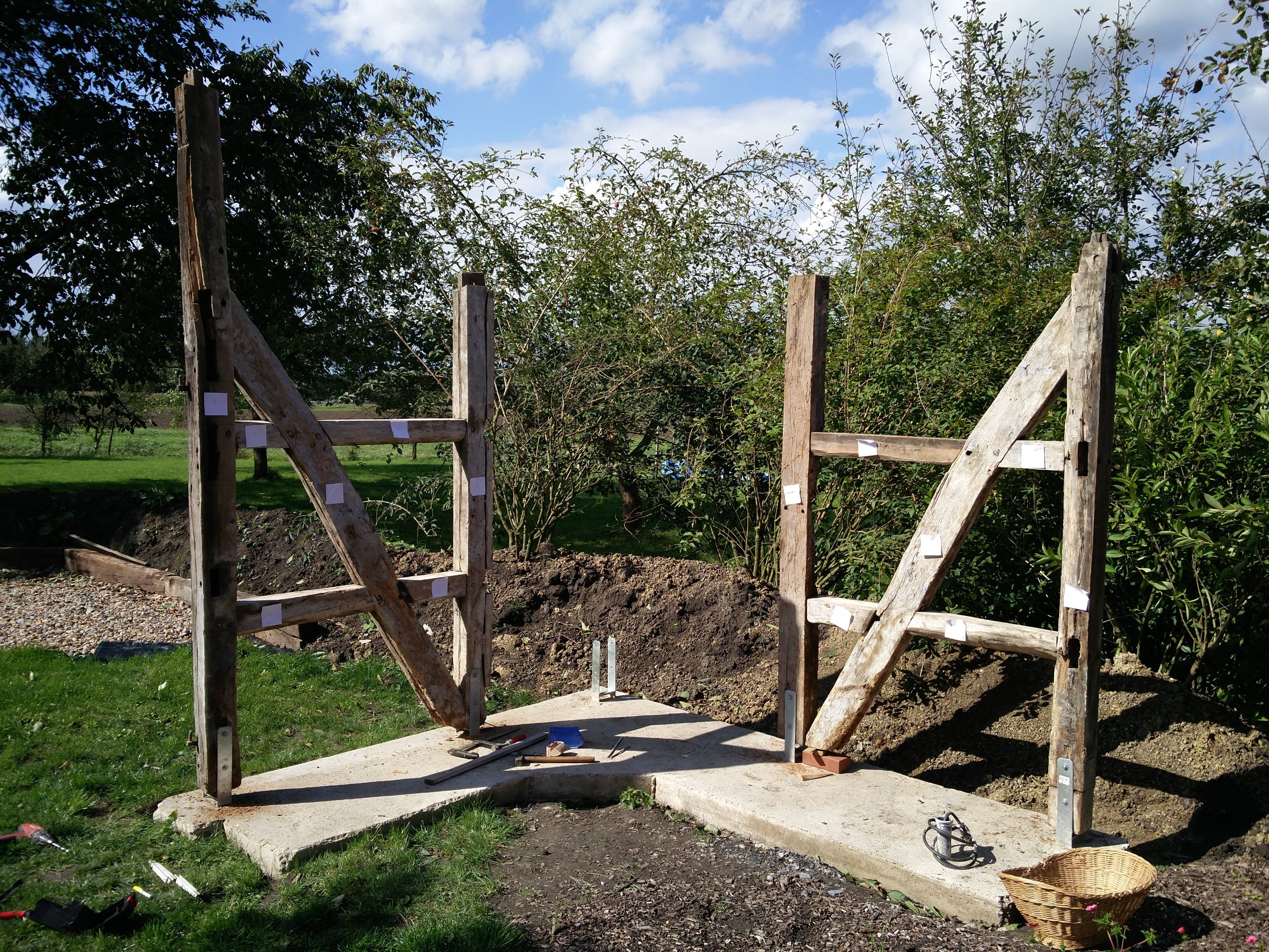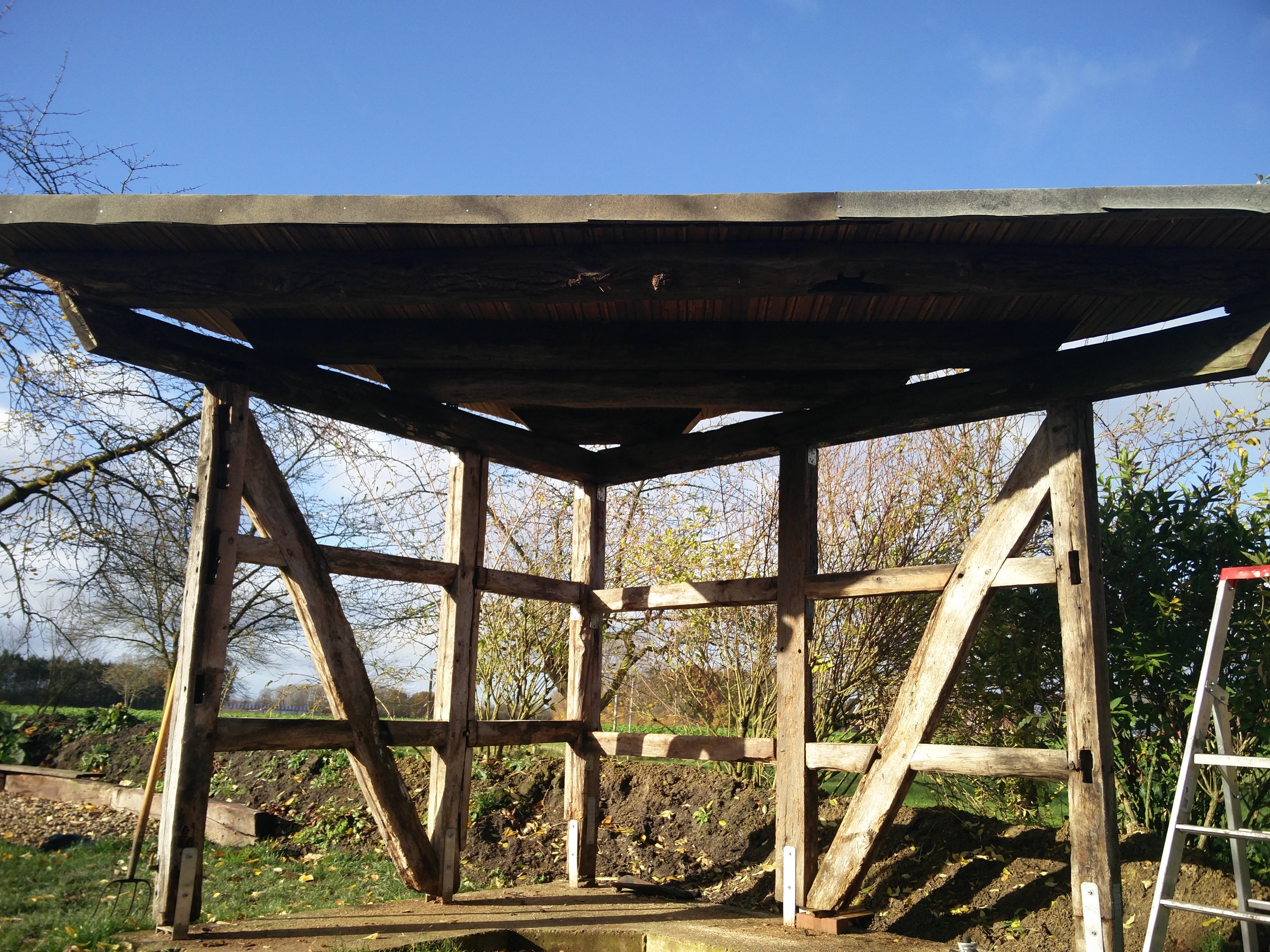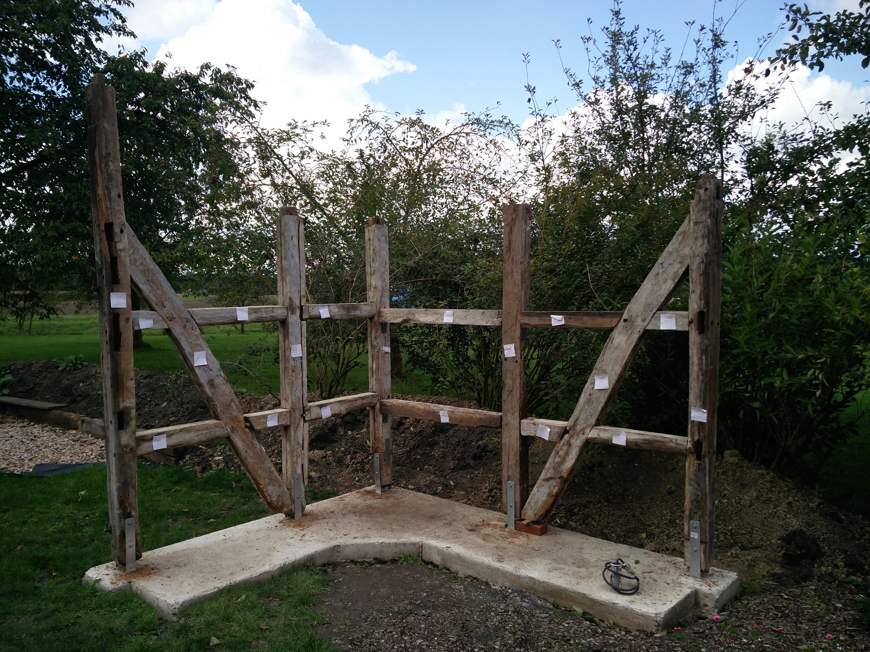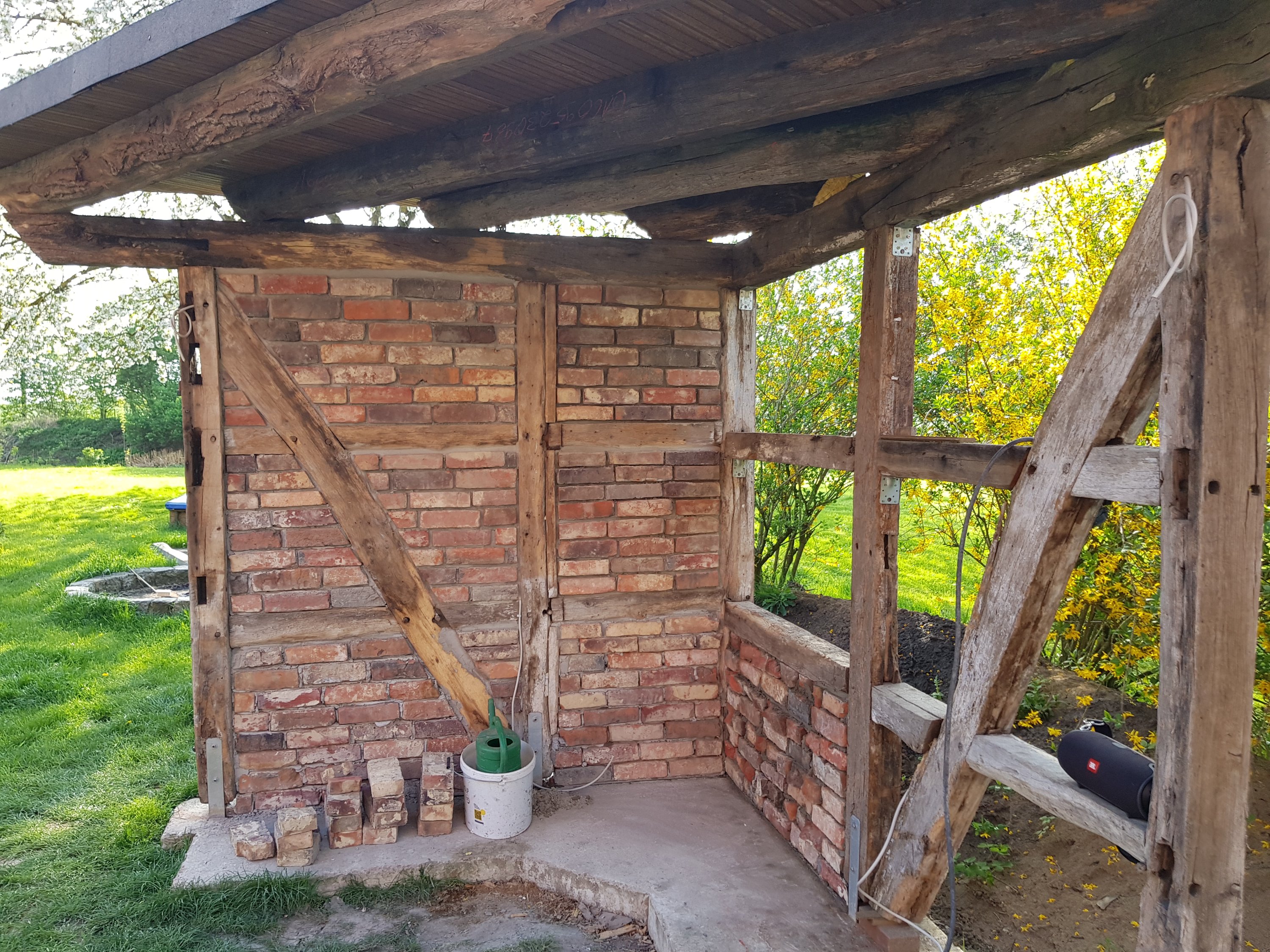 etwas gemauert und die nächsten balken stehen auch provisorisch