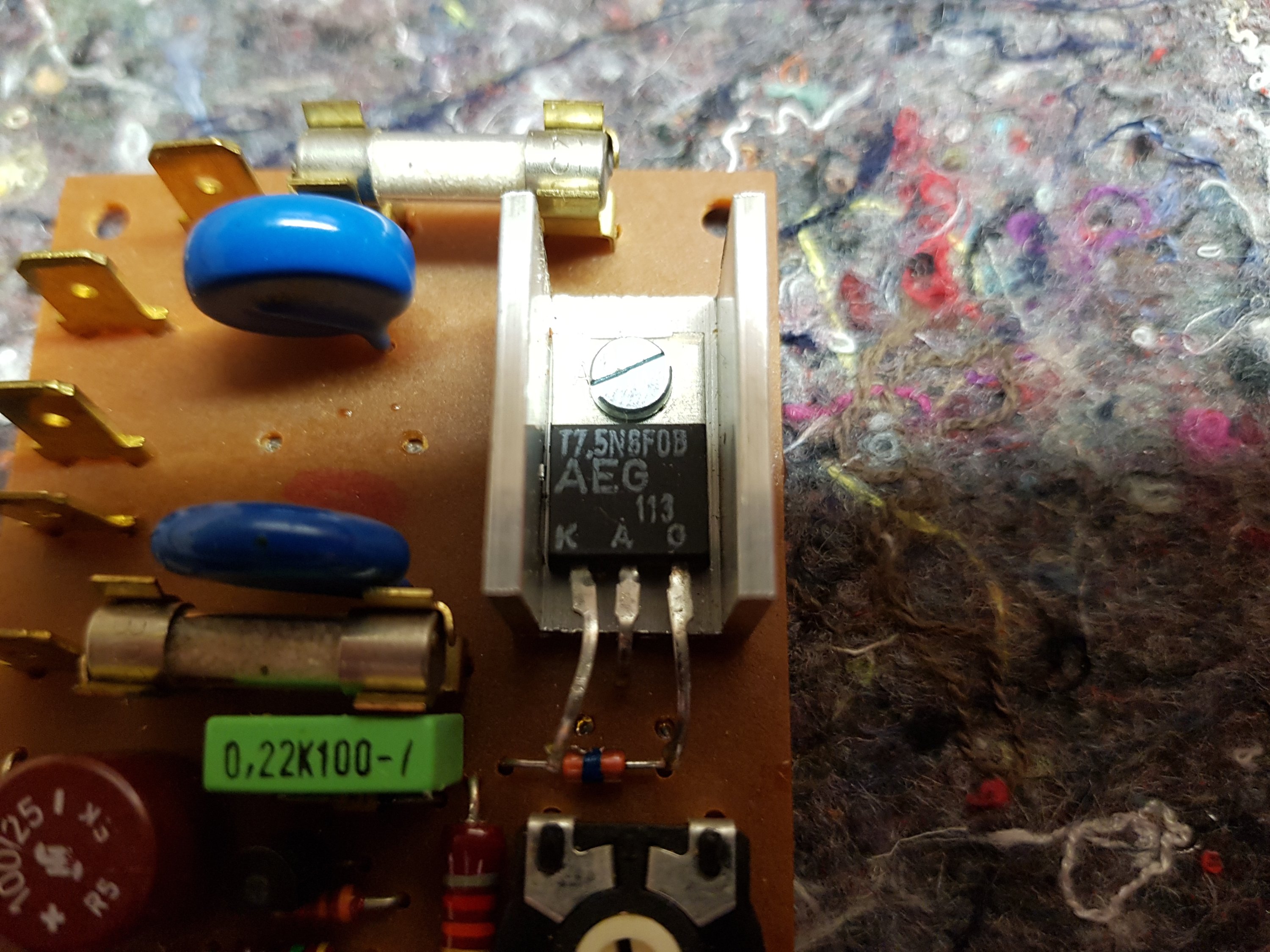 Noch was vergessen: Der kl. schwarze AEG - Vogel ist ein Thyristor d.h. eine steuerbare Diode. Anschlüsse Anode, Kathode und Gate. Läßt sich rel. gut messen.